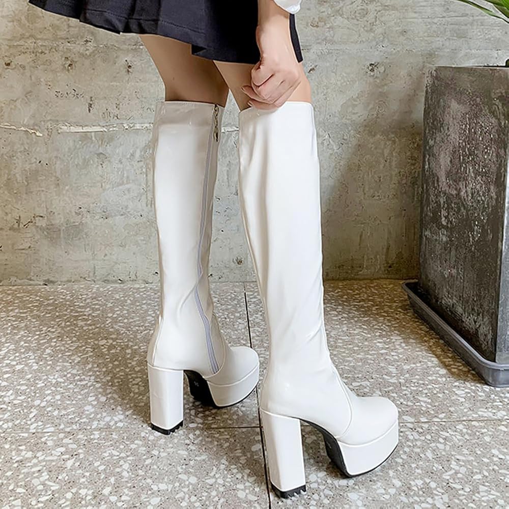 - أحذية Gogo من السبعينيات: يمكن ارتداؤها بجميع أنواع ملابس الربيع والصيف والخريف والشتاء، والتنورة، رائعة للمكتب، والعمل، والتسوق، والمواعيد، والزفاف، والسفر، اليومي، والعطلات، والحفلات، والنوادي الليلية، والهدايا.