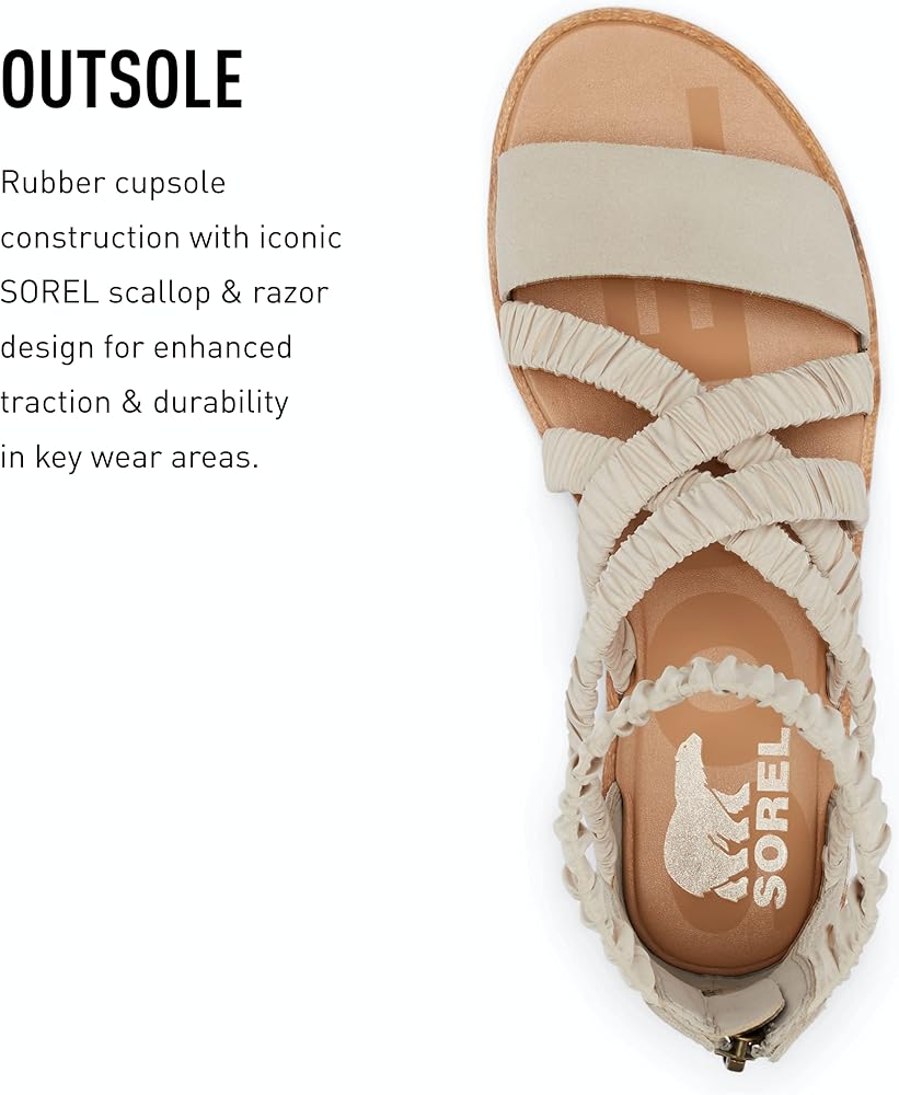 • نعل خارجي مطاطي: هيكل نعل مطاطي مع تصميم صدفي وشفرة الحلاقة SOREL المميز لتحسين الجر والمتانة في مناطق التآكل الرئيسية. هذه الصنادل المسطحة ذات النعل المطاطي متينة للغاية ورائعة على الأسطح الزلقة. يمكنك الشعور بالثقة مع هذا الصندل المسطح للسيدات أثناء المشي في الأيام الممطرة. يتميز هذا المنتج الموسمي الذي يجب اقتناؤه بتصميم ظلي ملفوف بالفلين مع كل من الجلد السويدي والأشرطة المطاطية في مجموعة متنوعة من الألوان التي يمكن ارتداؤها مع أي شيء.