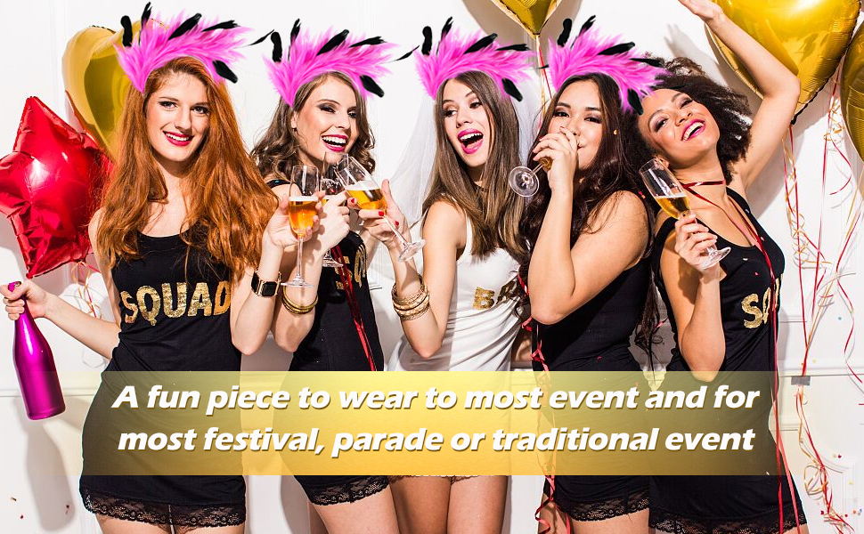 هدية: هدايا جميلة للنساء والسيدات والفتيات في عيد الهالوين أو عيد الشكر أو حفلة الكريسماس أو رأس السنة الجديدة أو هدية عيد الحب أو أي مكافأة أو احتفال آخر. هدايا رائعة للضيوف إذا كنت مضيفة حفلة. إكسسوارات ماردي جرا الرائعة للضيوف إذا كنت مضيفة حفلة، فلا يمكن لأحد أن يرفض عصابة الرأس الفريدة من نوعها! بالإضافة إلى ذلك، فإن عصابة الرأس الفريدة من نوعها هي هدية مثالية لشريكك في الرقص في الحفلات الراقصة إذا كنت رجل نبيل.