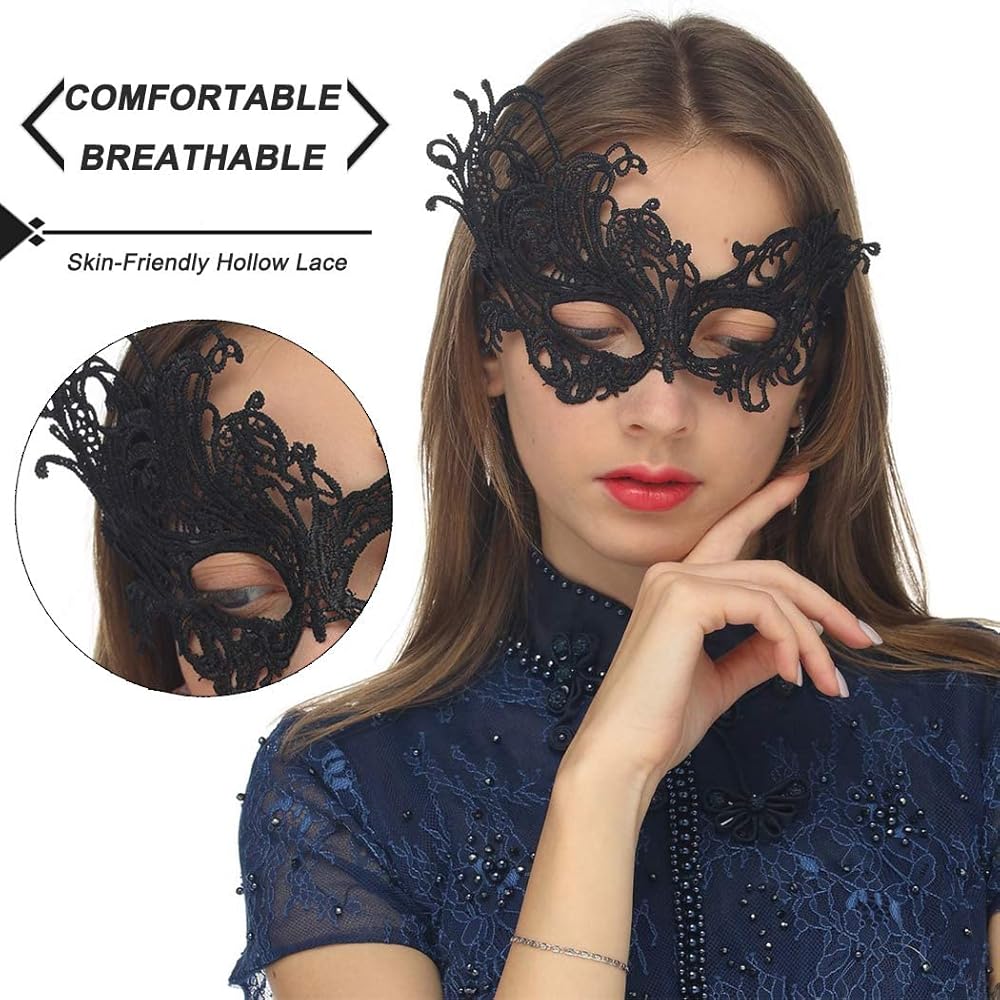 بالإضافة إلى الريش، ستحصل أيضًا على قناع جميل من الدانتيل. يبدو قناع الدانتيل أنيقًا ومميزًا في حفلة الكمامة. جذابة وأنيقة، ديكور رائع عند حضور الحفلات أو التقاط الصور. لمسة نهائية من الطلاء الأسود النفاث تشعر بالراحة على وجهك ولن تتقشر.