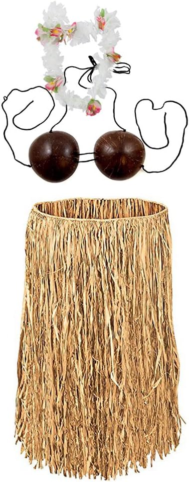 طقم زي تنكري وتنورة عشب هاواي مع حمالة صدر جوز الهند وزهرة لي