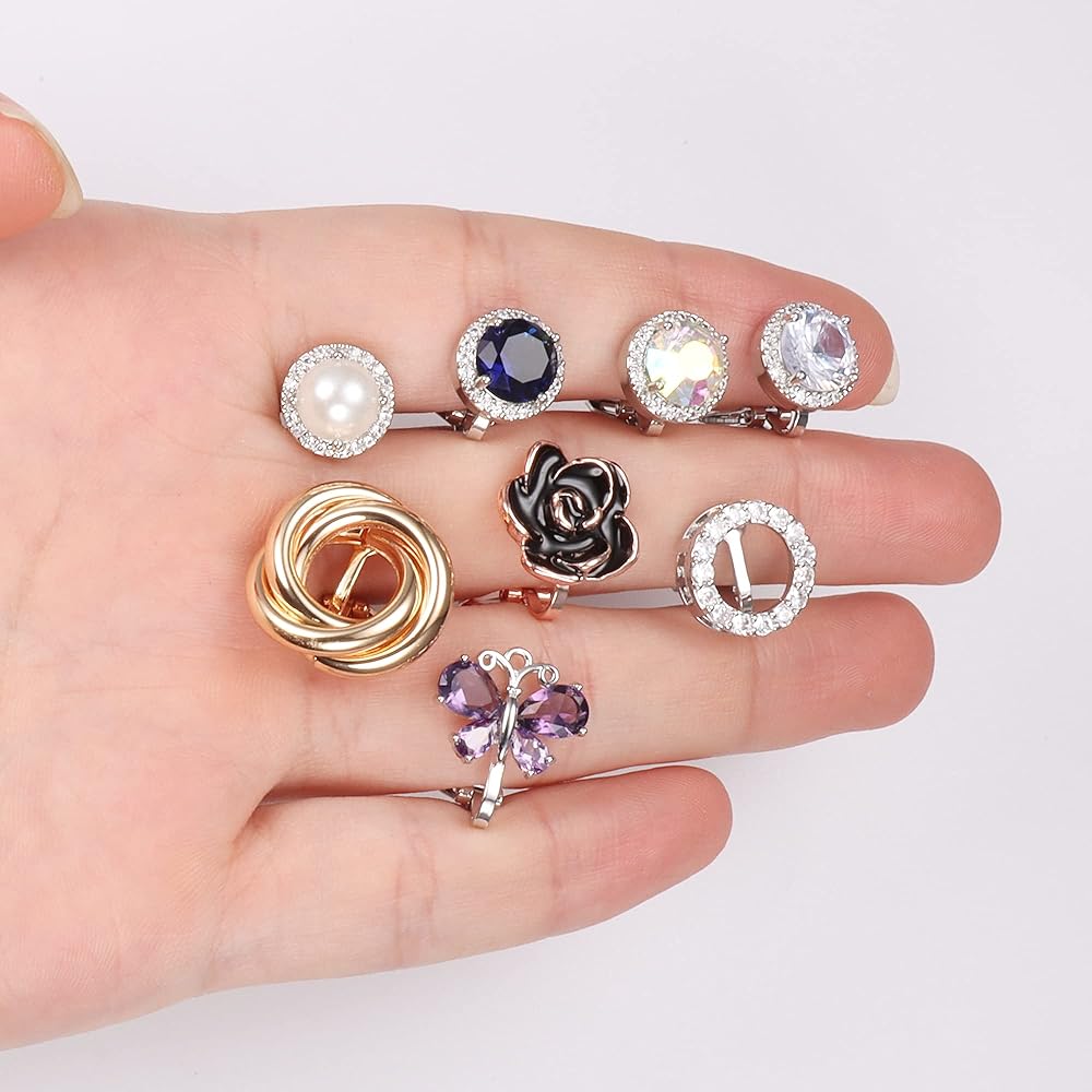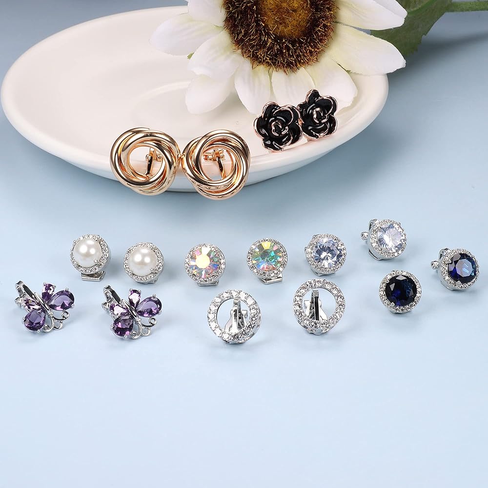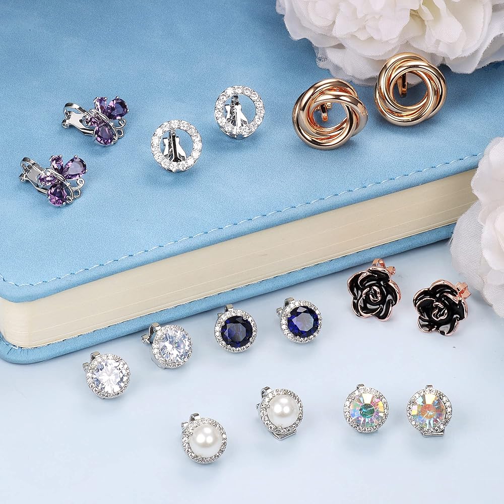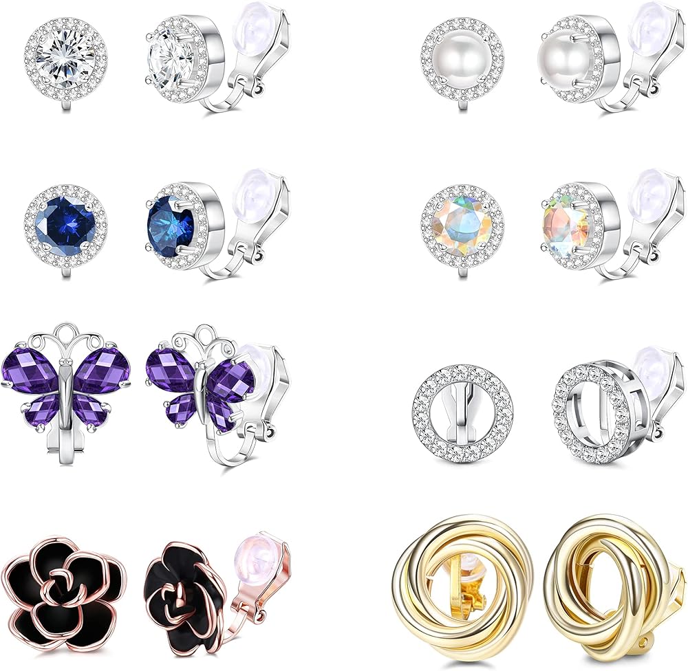 ❤ مجموعة أقراط مشبك❤ يمكنك الحصول على 8 أزواج من الأقراط النسائية في طلب واحد، بما في ذلك أقراط بمشبك لؤلؤ المياه العذبة، وأقراط بمشبك زركونيا مكعب، وأقراط بمشبك على شكل زهرة ومشبك على شكل فراشة. أنماط مختلفة من الأقراط غير المثقوبة توفر خيارات مختلفة للارتداء اليومي.