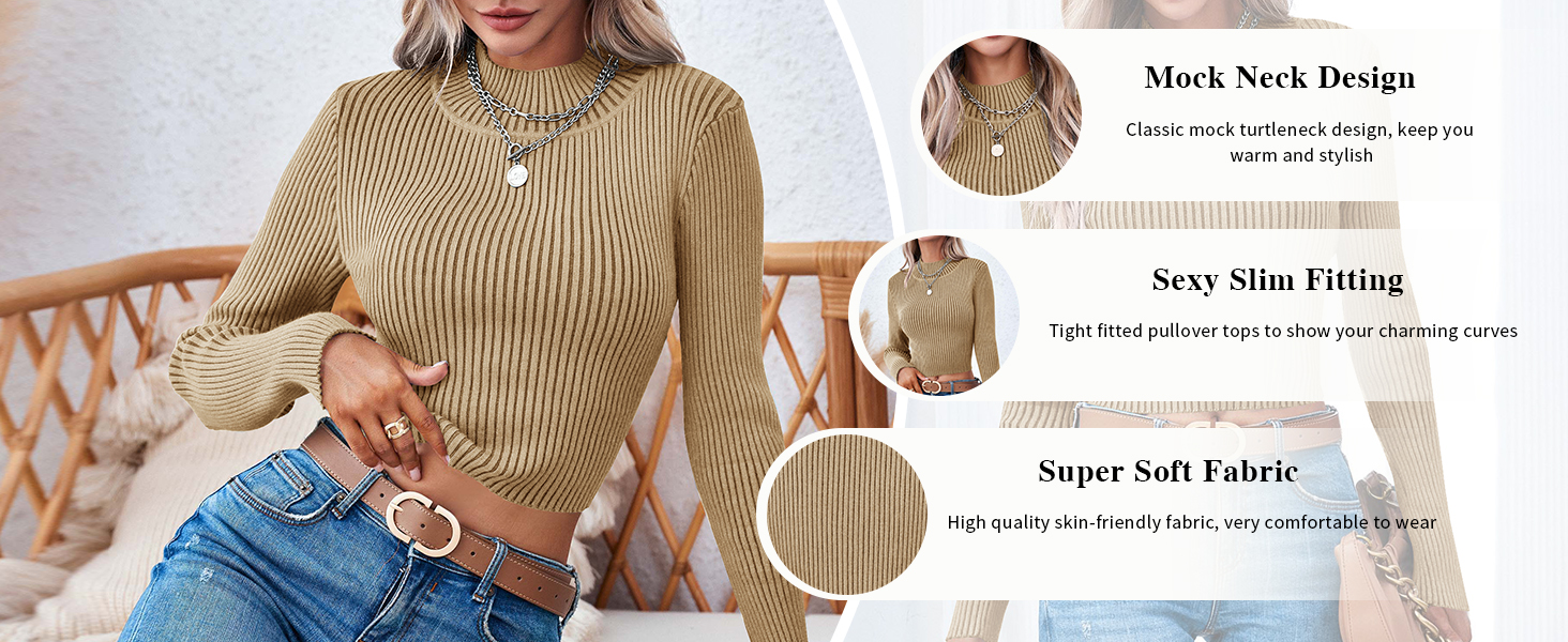 • رقبة وهمية - هذه السترة الصوفية المحبوكة برقبة وهمية لخريف وشتاء وربيع، مثالية للارتداء مع الجينز عالي الخصر أو التنانير أو المعاطف للحصول على مظهر أنيق وعصري