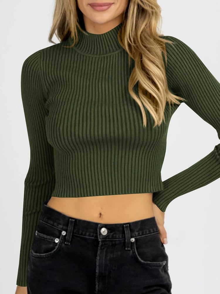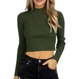 • قميص قصير - قمصان قصيرة مثيرة بأكمام طويلة تتميز بياقة مدورة وهمية، نسيج مضلع، مقاس ضيق، خفيف الوزن، لون سادة سادة، قمصان بلوفر أساسية للخريف، ملابس عصرية لعام 2023