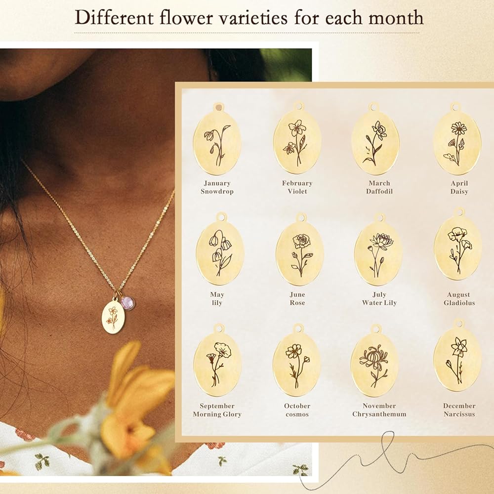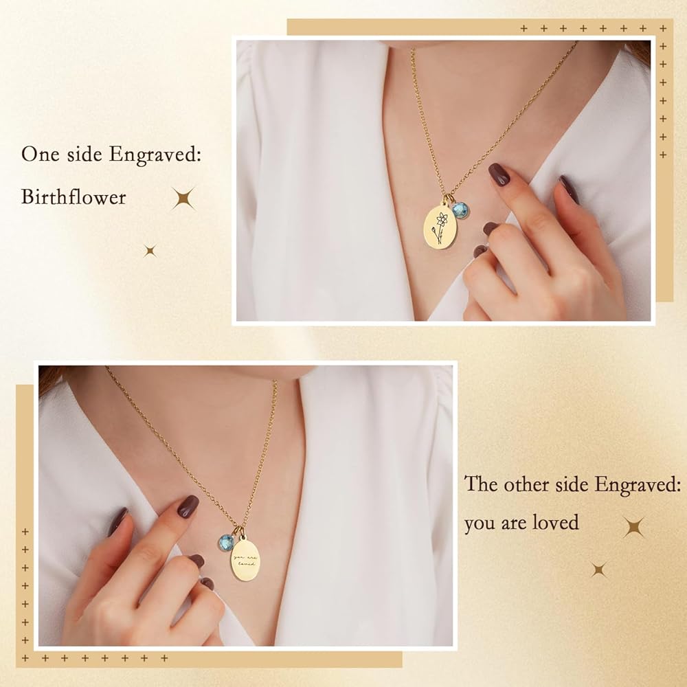 【تصميم منقوش على الوجهين】تتميز قلادة الزهرة هذه بتصميم منقوش أنيق على الوجهين، وتظهر زهور شهر الميلاد على الجهة الأمامية والكلمات القلبية "أنت محبوب" على الظهر. إنها الهدية المثالية للنساء للتعبير عن مشاعرهن. اختر الجانب الذي يناسبك أكثر في المناسبات المختلفة.