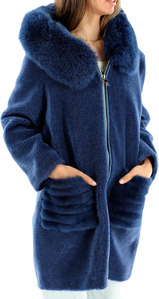 La Fiorentina Oversized Teddy Coat w/ Sheep Fur - Navy