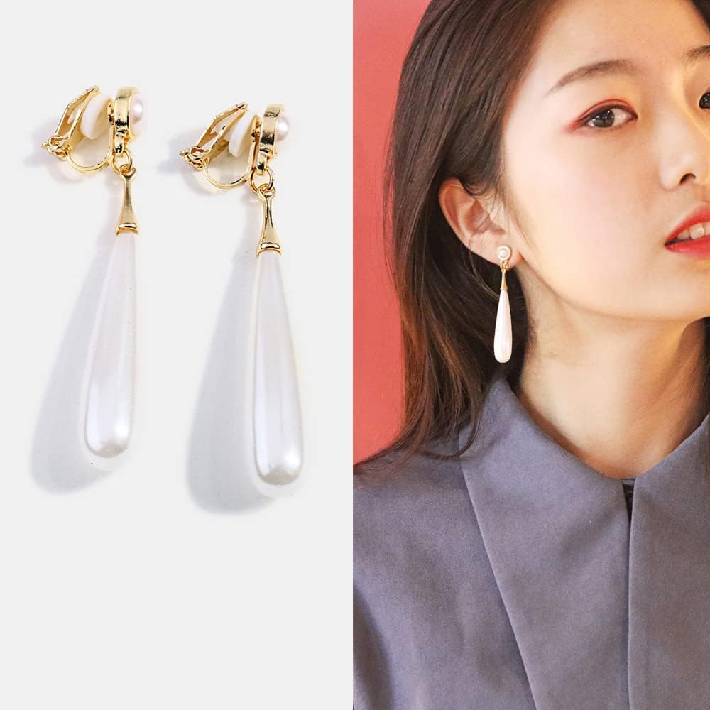 مشبك اللؤلؤ على الأقراط للنساء الأبيض تقليد كليب Ons الذهب استرخى أقراط مقلد بيرل انخفاض القرط النيكل الحرة الأزياء هدية مجوهرات