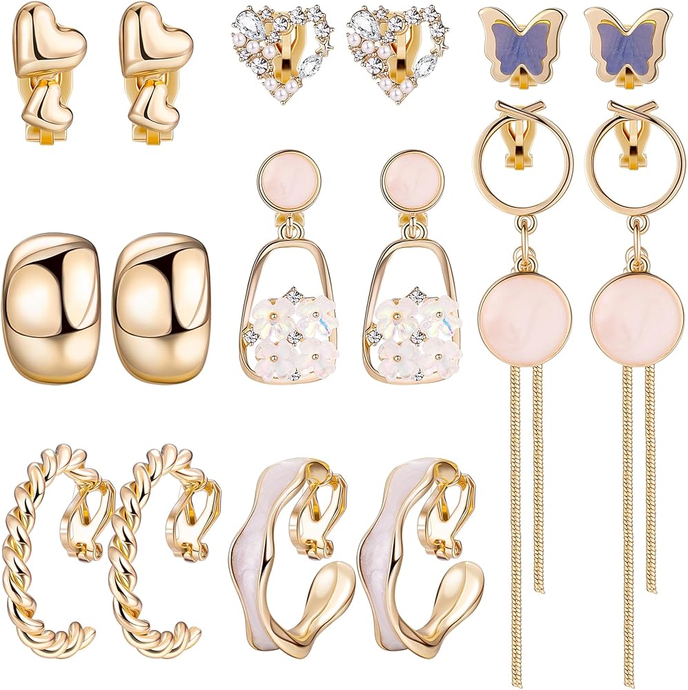 【مجموعة أقراط بمشبك ذهبي】يمكنك الحصول على 8 أزواج من الأقراط النسائية في طلب واحد، بما في ذلك 3 أزواج من الأقراط المرصعة، و3 أزواج من الأقراط الحلقية، وزوجين من الأقراط المتدلية. تقدم مجموعة واسعة من الأساليب لتكمل مختلف الملابس والمناسبات.