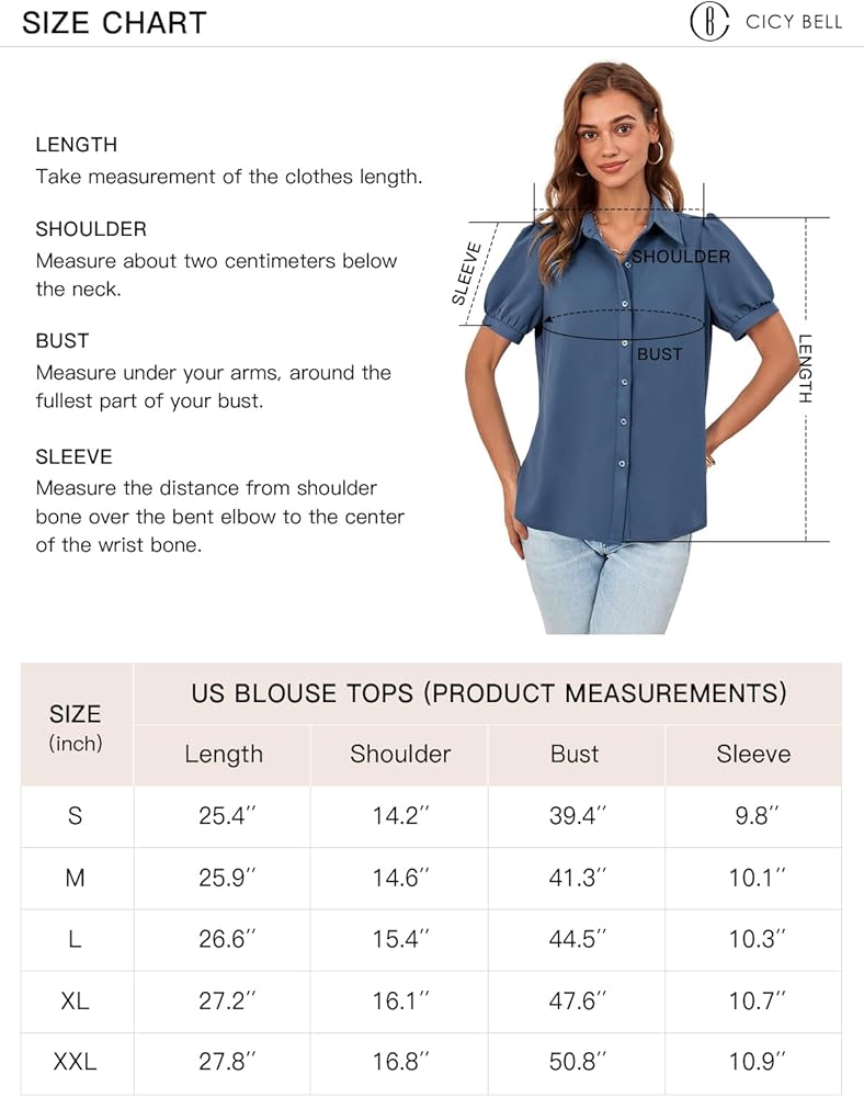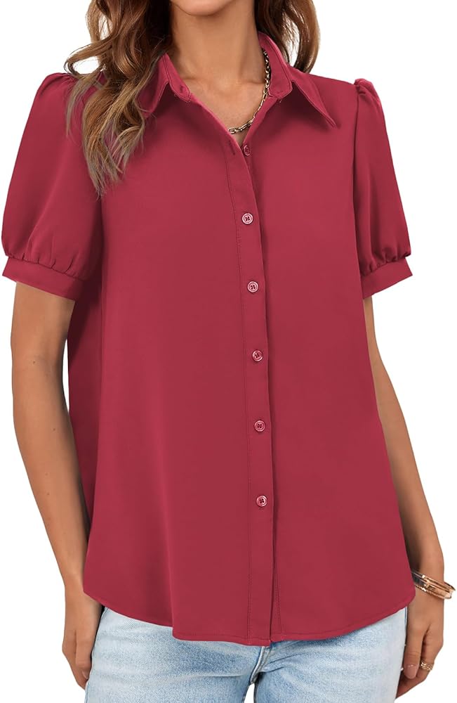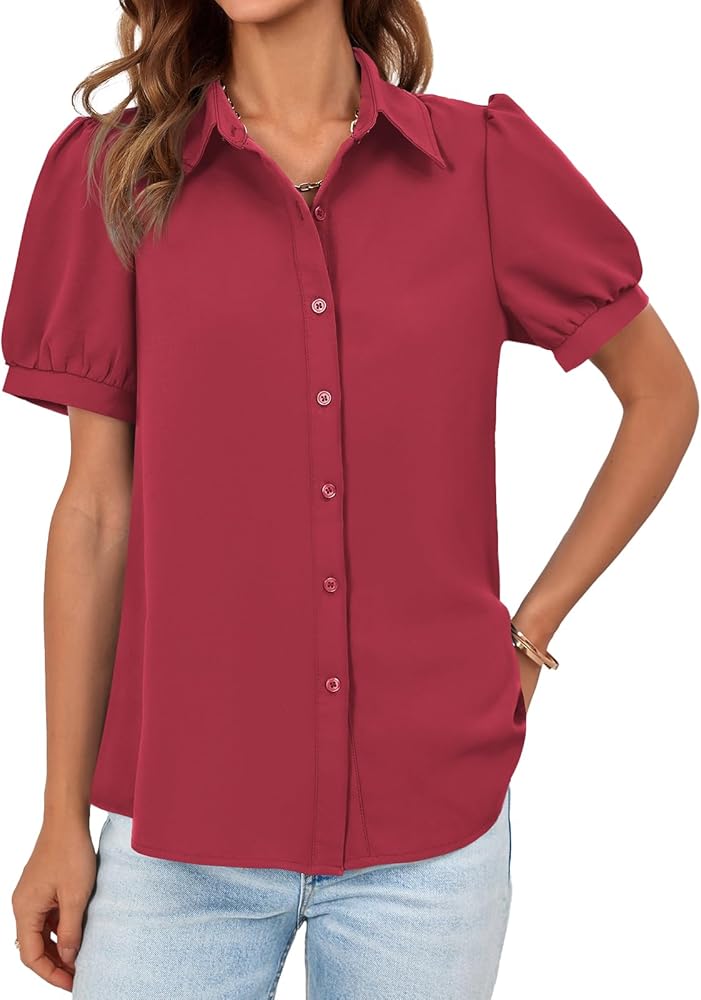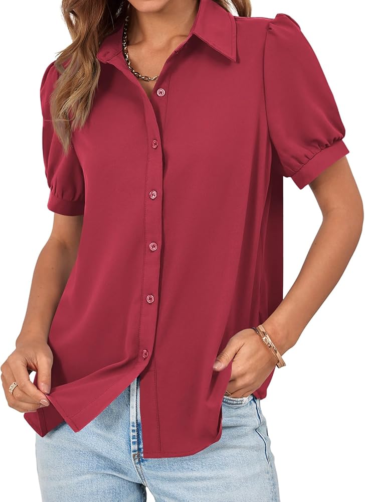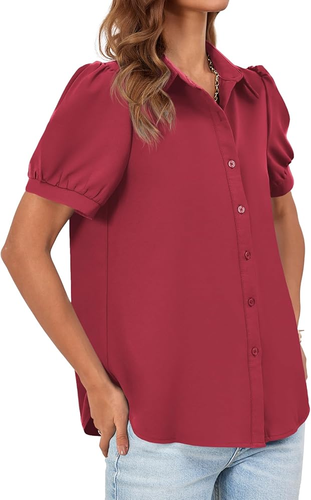 - ارتقي بملابس العمل الخاصة بك: مع قمصاننا النسائية ذات الأكمام القصيرة المنتفخة، المثالية للمناسبات غير الرسمية في المكتب والعمل.