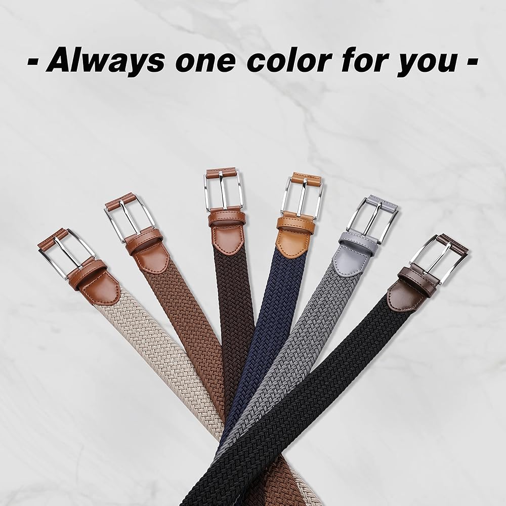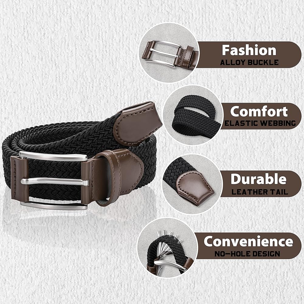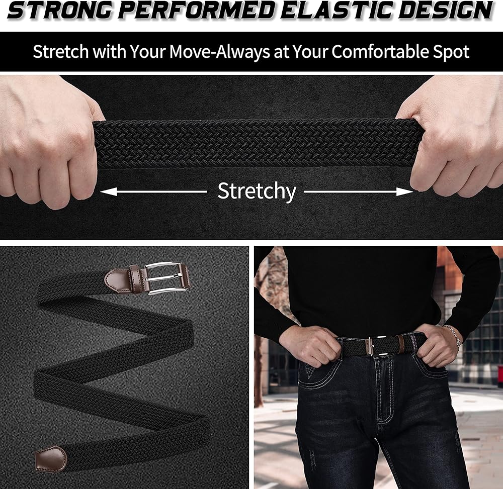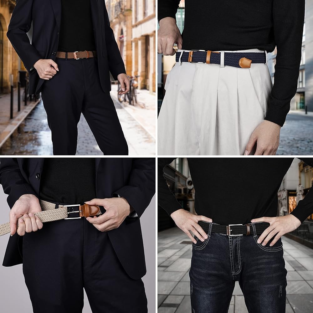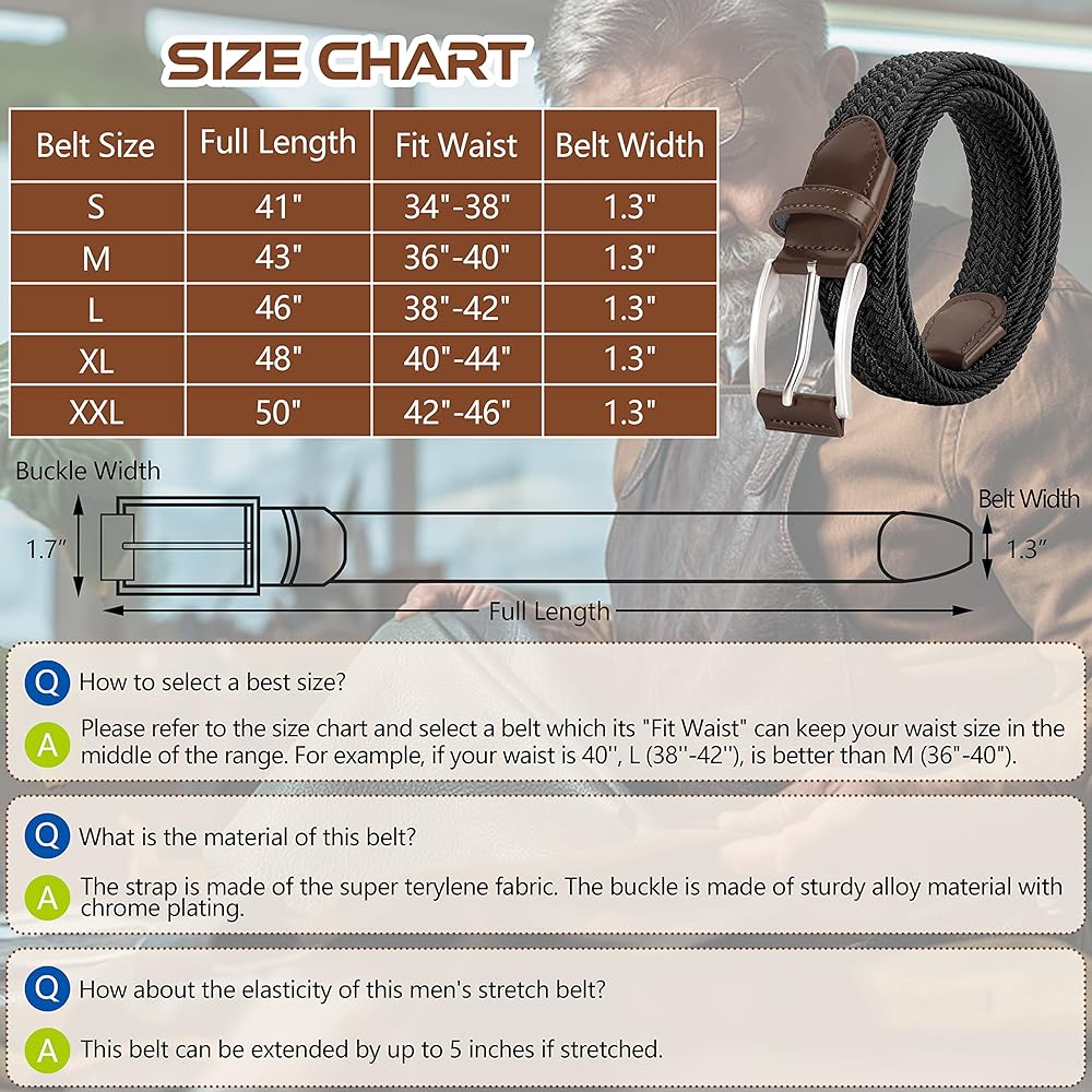 【مريح طوال اليوم】إنه حزام رجالي مطاطي بدون تصميم بفتحة، مادة الحزام الرئيسية مرنة وقابلة للتمدد، وتمتد مع حركاتك. لا يوجد شعور بالضغط عند الانحناء والقرفصاء.