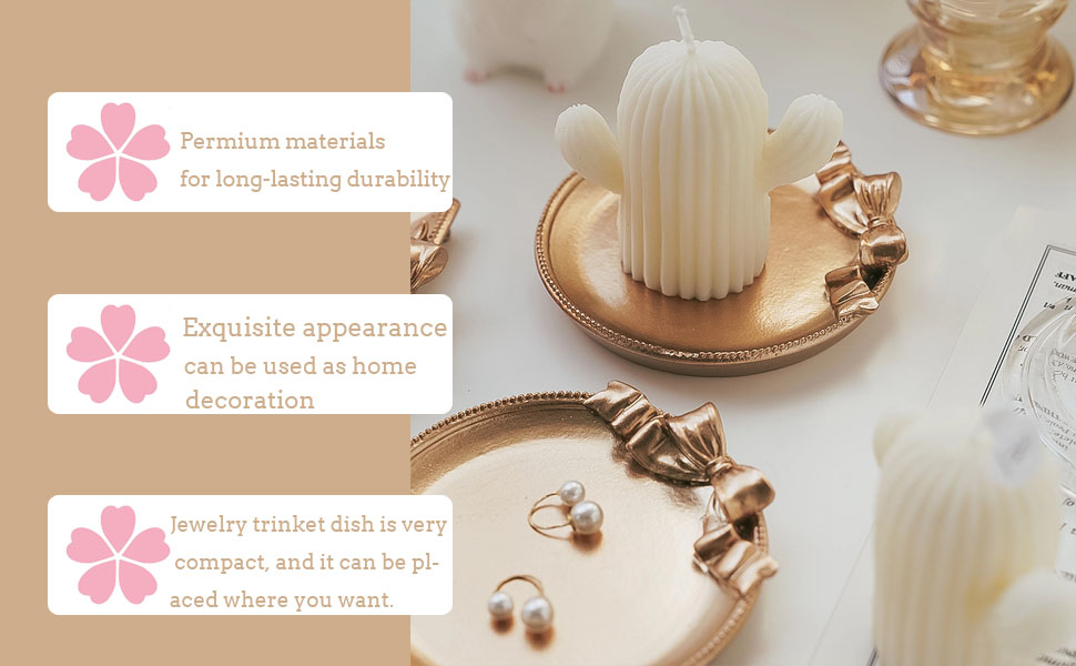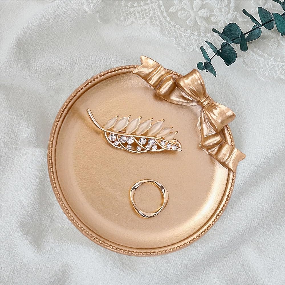 • 🎀【Unique Shape】This ring holder dish is made in ribbon design with special process, which is full of color and smooth to the touch. The cut edges outline a golden line for a more noble look. Simple and elegant design makes the jewelry holder perfectly match with various accessories.