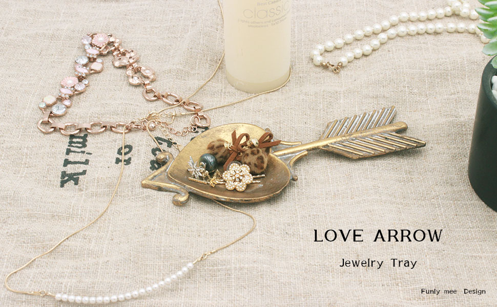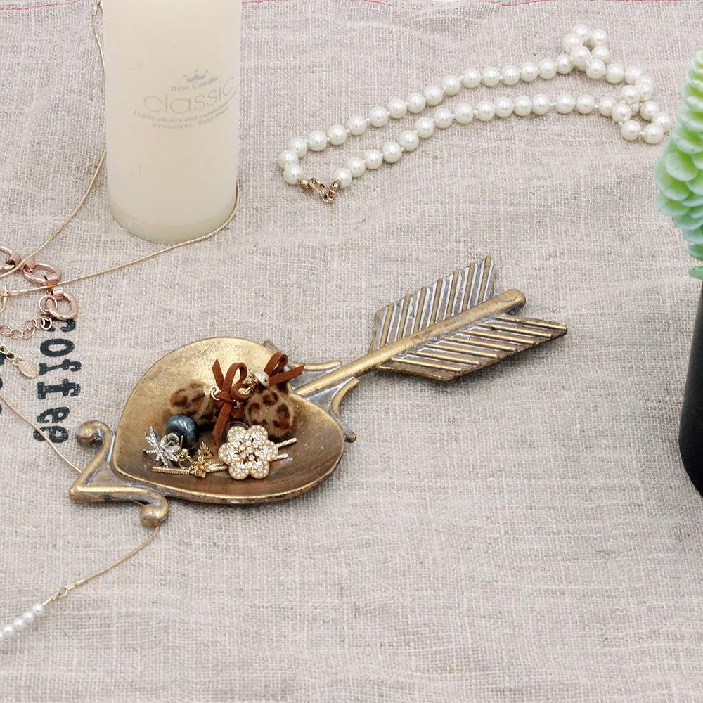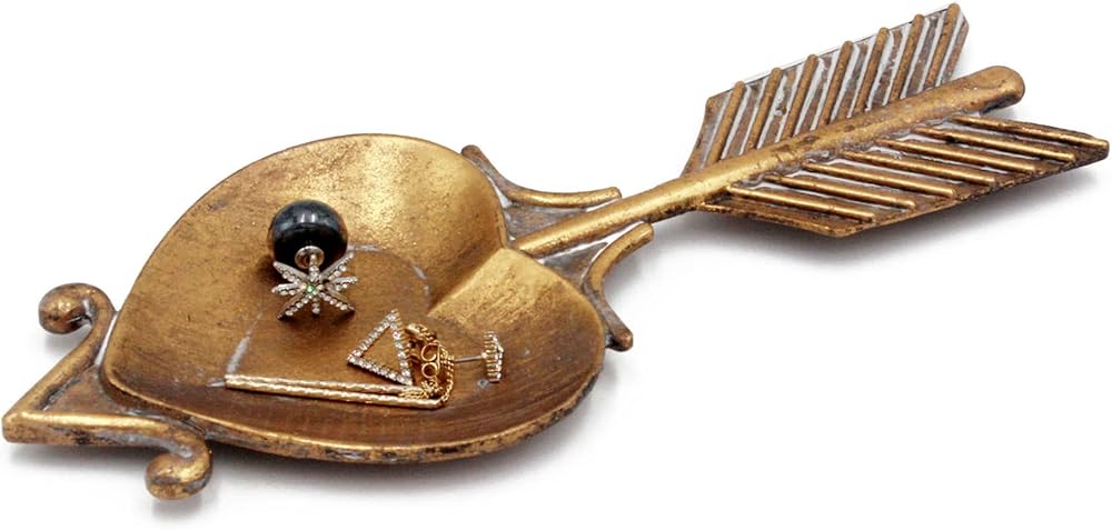 فنلي مي صينية مجوهرات ذهبية عتيقة بتصميم سهم الحب العتيق، حامل خاتم الزواج 8 × 3.3 انش
