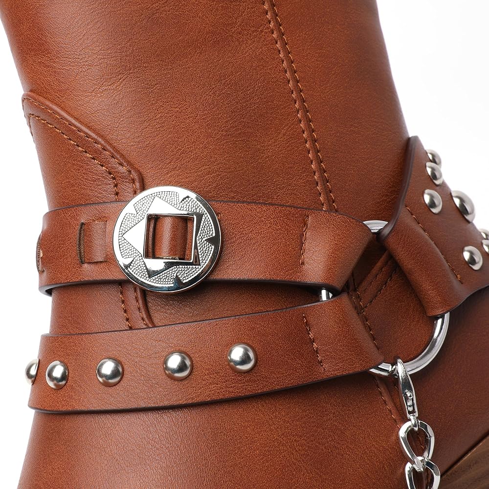 👢الجودة مع كل خطوة: مصنوع من جلد البولي يوريثان السميك الفاخر، نعل خارجي متين من المطاط اللدن حراريًا غير قابل للانزلاق مع قبضة قوية مقاوم للتآكل ويمكن أن يحسن سلامة المشي. الأبازيم الفضية والشعارات المعدنية مقاومة للصدأ ومصممة لتدوم طويلاً.