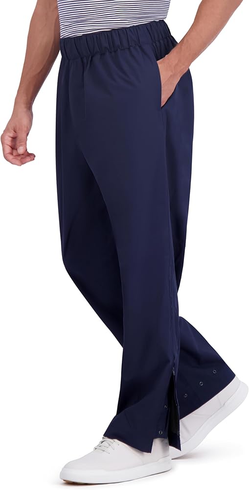 - Front hand pockets feature zippered pass-through for easy access to pants. Leg zippers with rain gutter provide for easy on and off over golf shoes.