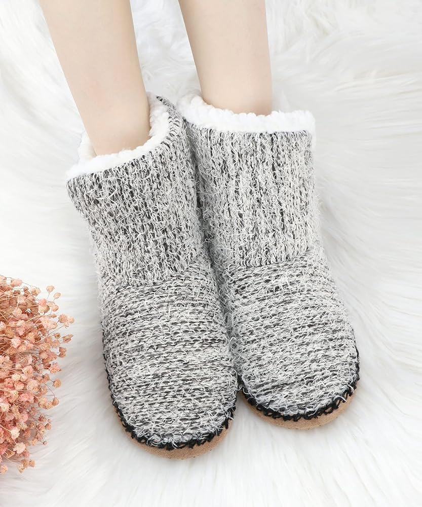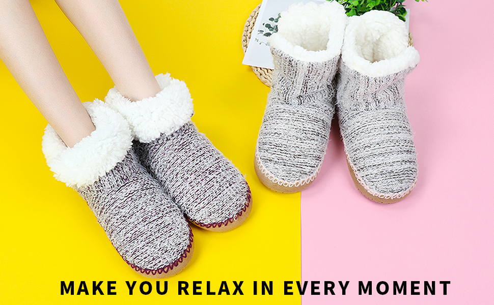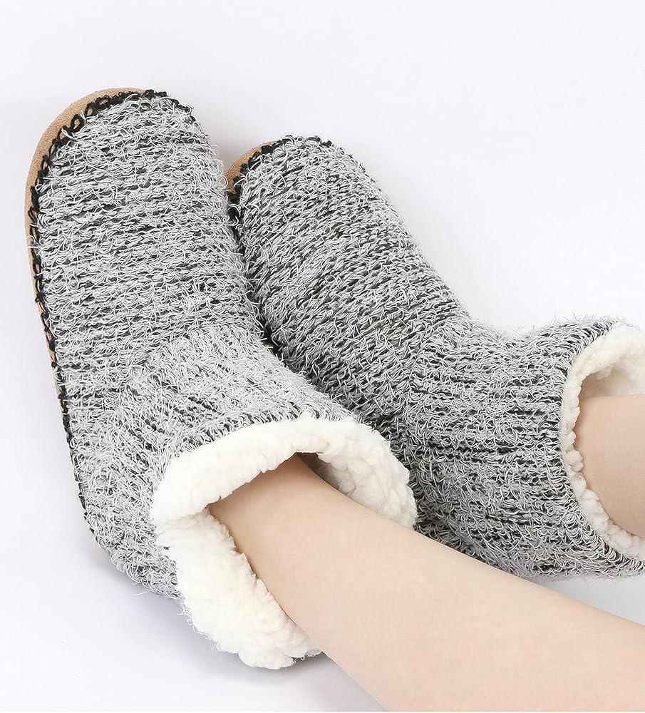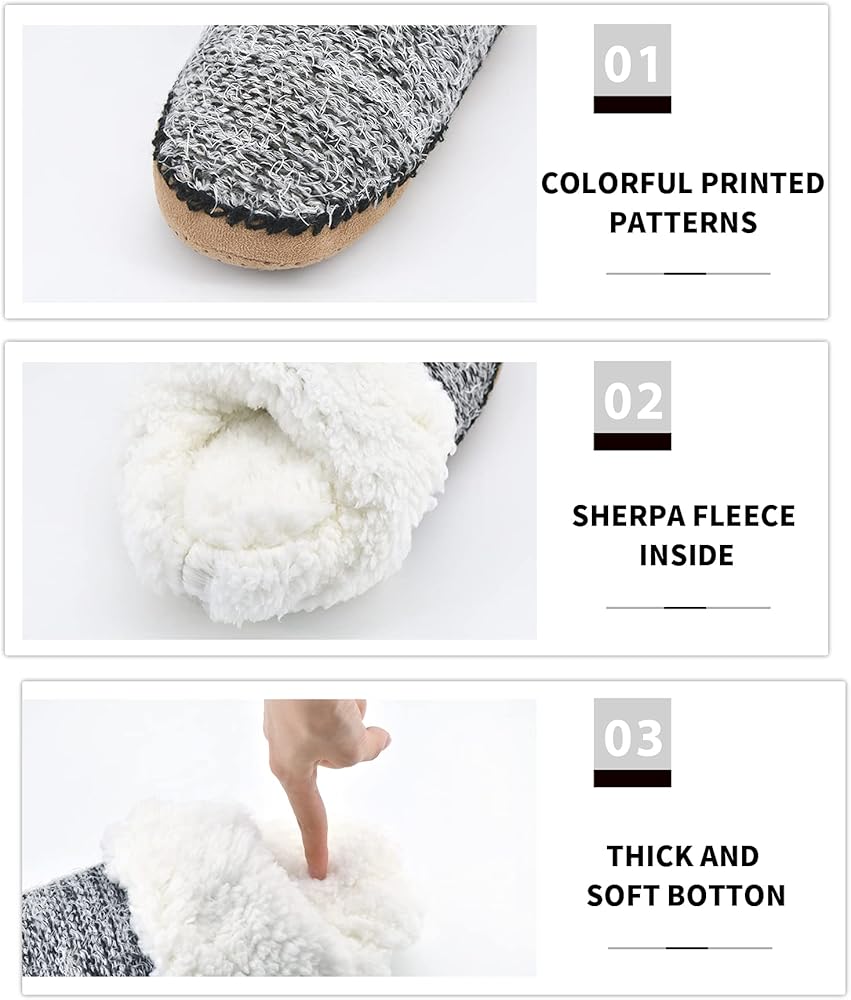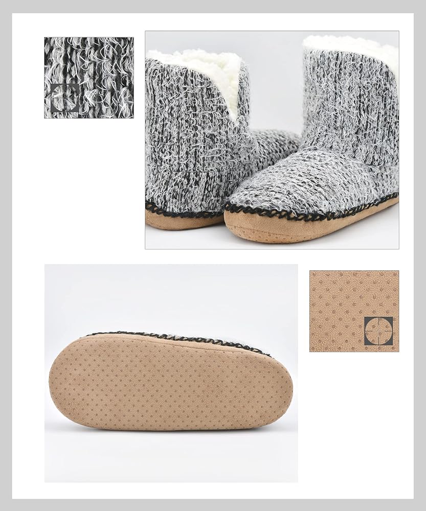 هيكل نعل سميك ومضاد للانزلاق - يحتوي على نعل غير قابل للانزلاق يحتوي على نقاط مضادة للانزلاق مفصلة على النعل الخارجي، تمنع هذه النقاط المضادة للانزلاق الضوضاء الناتجة عن الانزلاق على أي سجاد أو خشب أو أرضيات من البلاط وتحمي قدميك من البرد أو الأرضيات الساخنة من الطقس البارد/الحار.