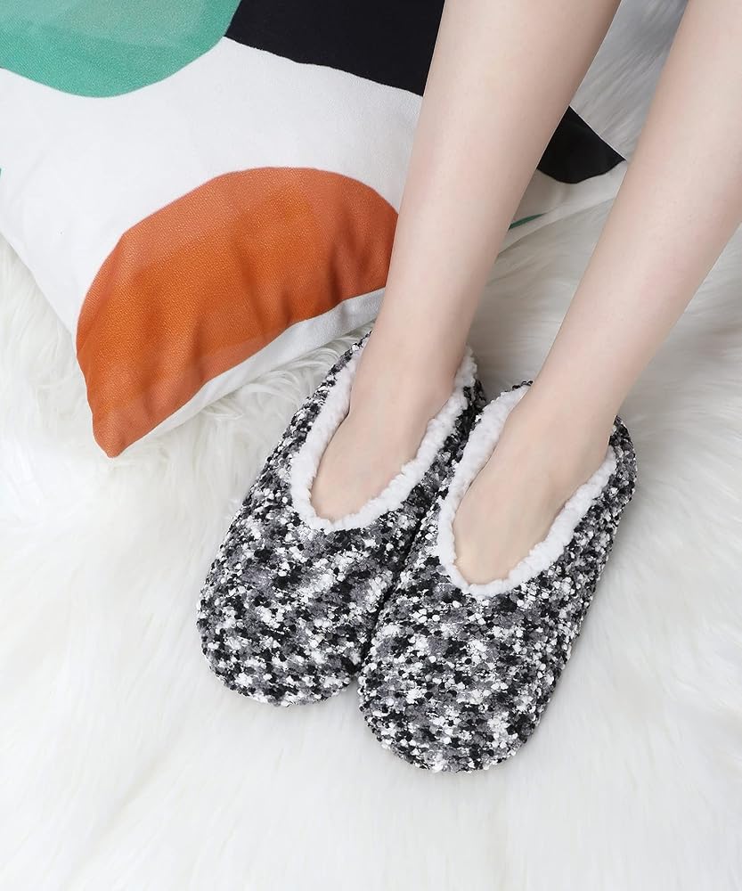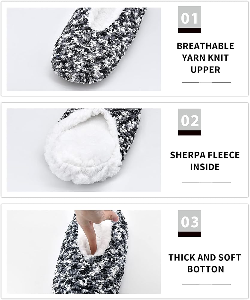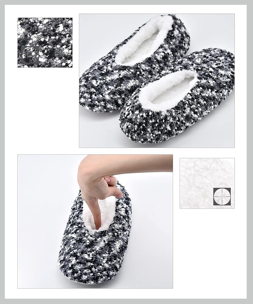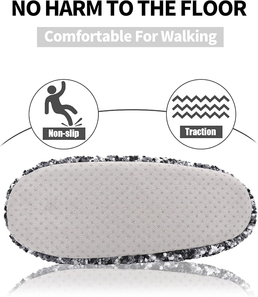هيكل نعل سميك ومضاد للانزلاق - يحتوي على نعل غير قابل للانزلاق يحتوي على نقاط مضادة للانزلاق مفصلة على النعل الخارجي، تمنع هذه النقاط المضادة للانزلاق الضوضاء الناتجة عن الانزلاق على أي سجاد أو خشب أو أرضيات من البلاط وتحمي قدميك من البرد أو الأرضيات الساخنة من الطقس البارد/الحار.