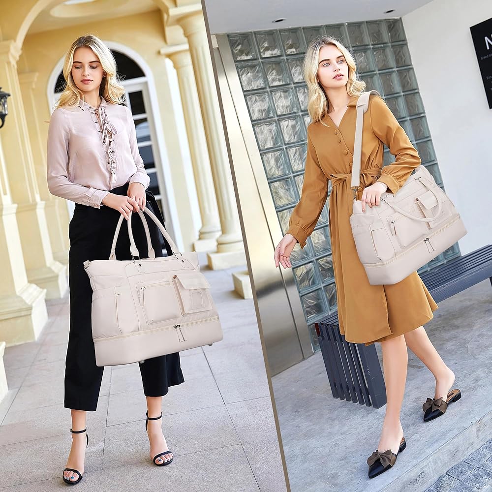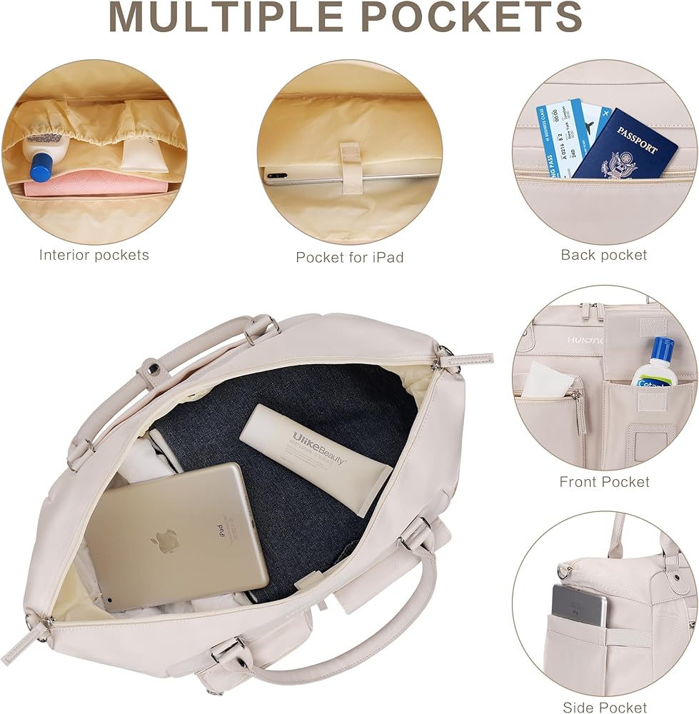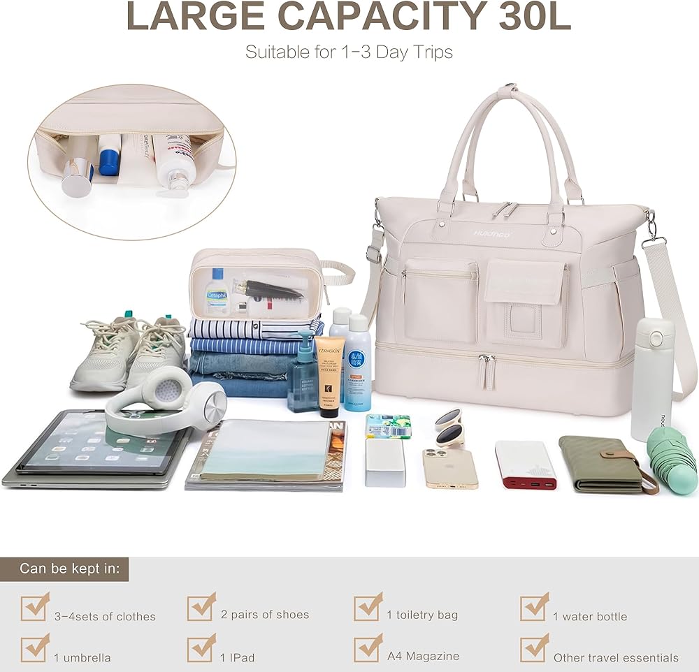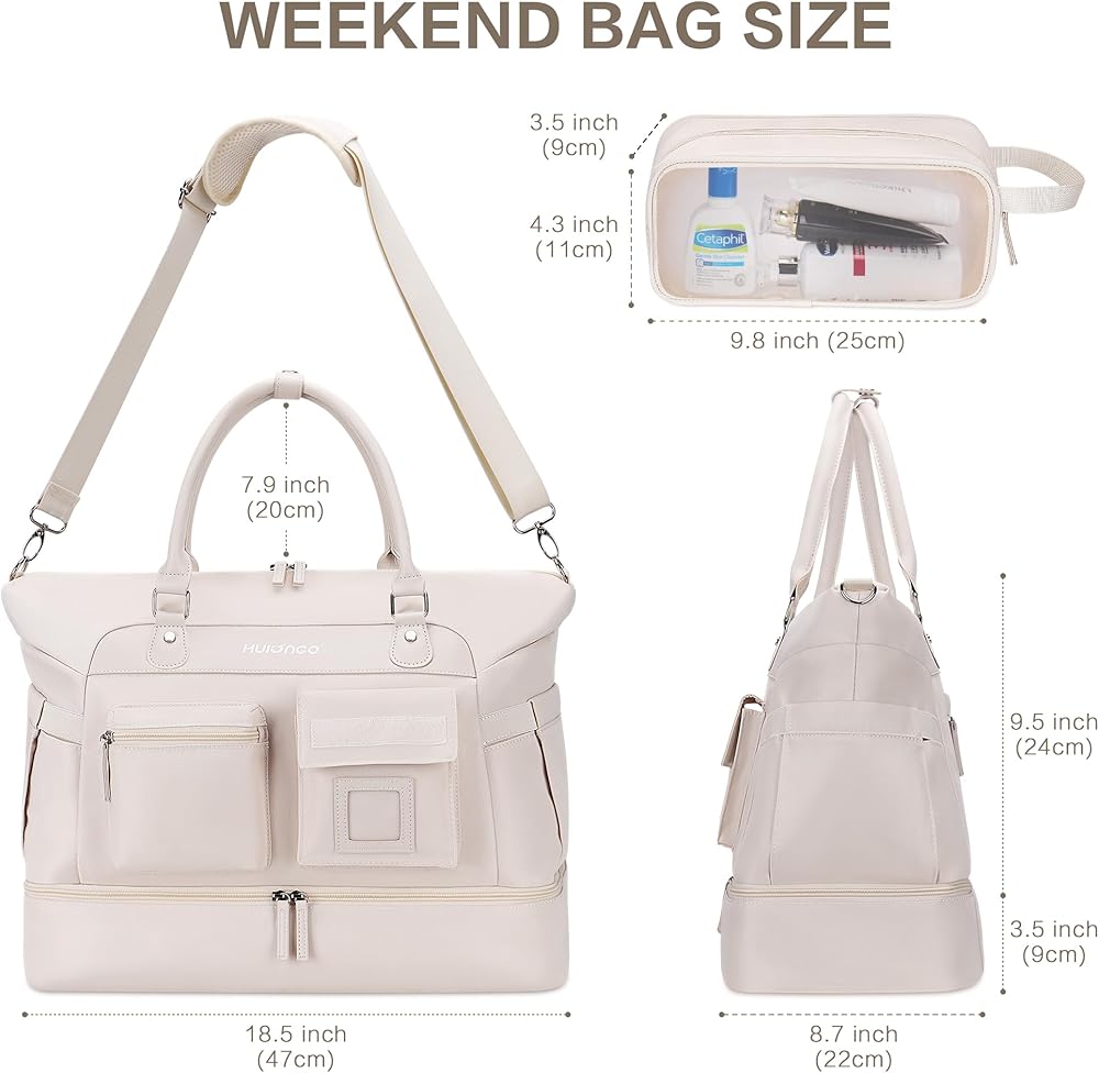 مقاس مثالي - مقاس 47×33×22 سم/18.5×13.8×8.7 انش، شنطة عطلة نهاية الأسبوع هذه هي الحجم المثالي لرحلة قصيرة. سواء كنت متجهًا لقضاء عطلة نهاية الأسبوع أو رحلة عمل سريعة، فإن هذه الحقيبة النسائية الليلية بها مساحة كبيرة لتخزين جميع ضرورياتك.