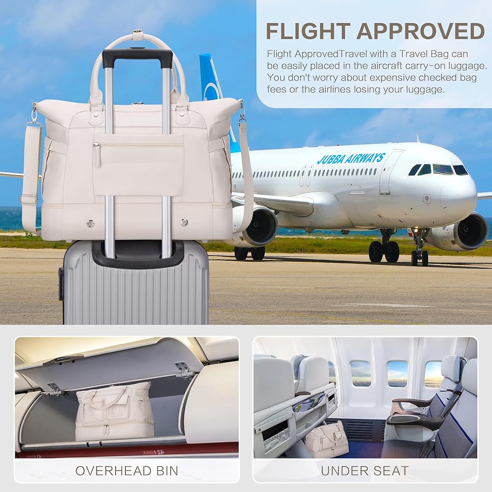 مريحة ومتعددة الاستخدامات - تتميز حقيبة عطلة نهاية الأسبوع بجيبين أماميين وحقيبة أمتعة في الخلف، مما يجعلها خيارًا مناسبًا للسفر. يسمح المقبض الجلدي وحزام الكتف القابل للتعديل بحمل مريح، ويمكن أيضًا استخدام الحقيبة كحقيبة محمولة عند الطيران.