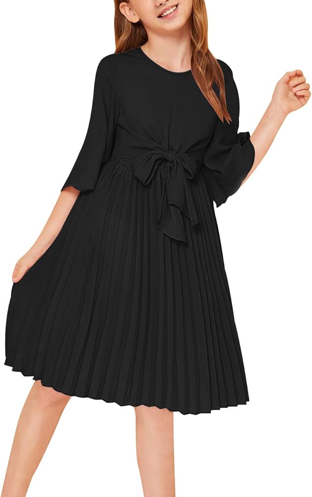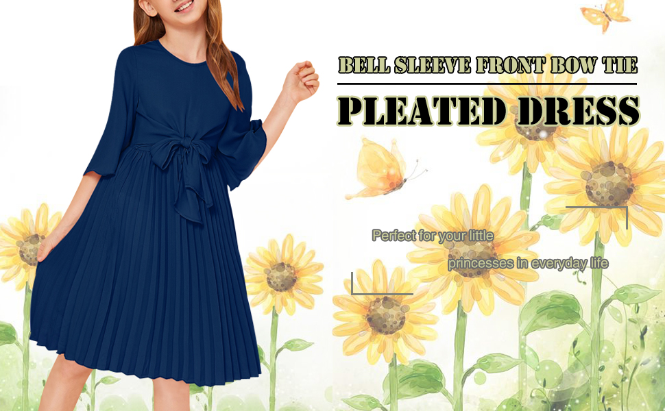 المزايا: طراز أنيق وكاجوال، فستان بحاشية مطوية، رقبة دائرية، كم جرس بطول 3/4، صورة ظلية ملائمة ومتوهجة، سحاب خلفي، طول الركبة، مع مبطن. ويمكنك ربط القوس على الجزء الأمامي من الخصر بحزامين.