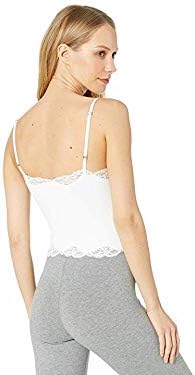 Simply delicious. Stretch microfiber cami trimmed with sultry lace. Hits at a cropped length. V-neckline. Adjustable straps. Straight hemline. Style #4553. 90% nylon, 10% Lycra spandex. Hand wash cold and line dry.