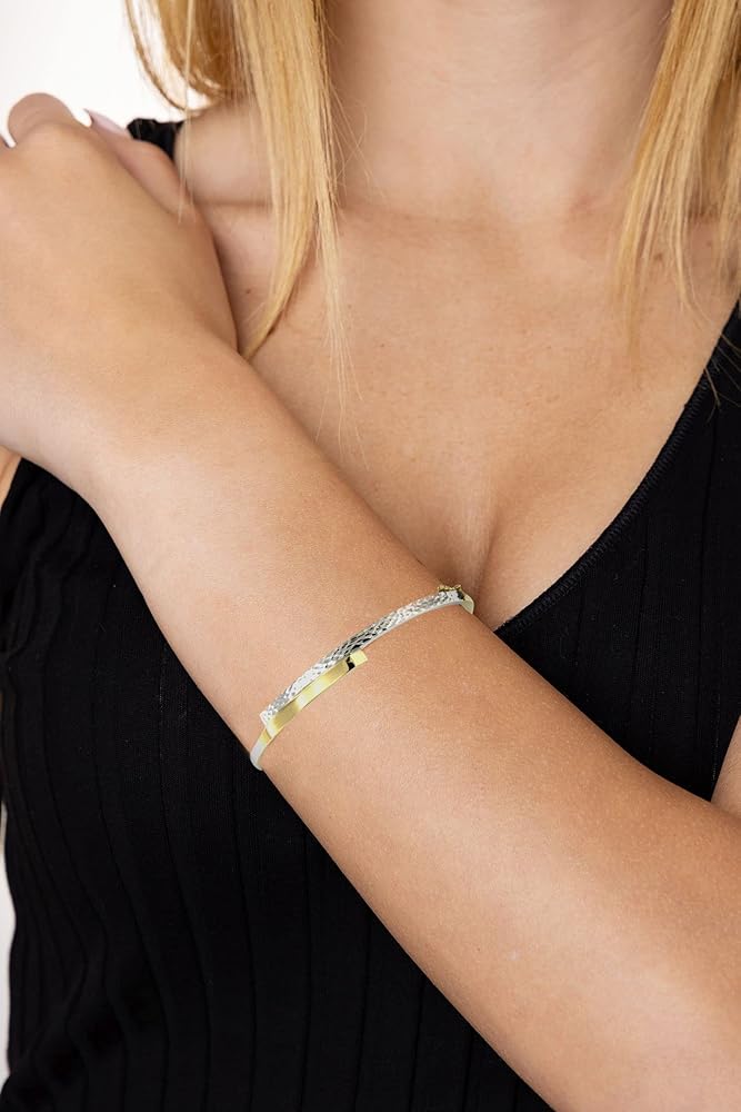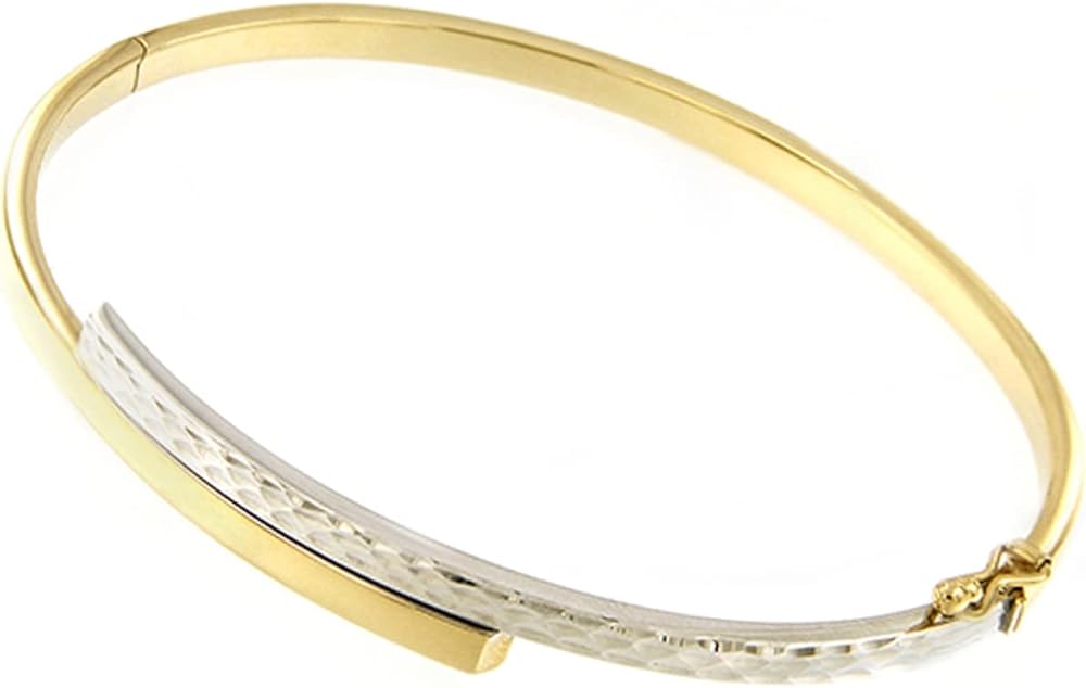 هذا السوار الذهبي الرائع هو الإكسسوار المثالي لأي امرأة أو فتاة. مصنوع من الذهب الأصفر والأبيض عيار 14 قيراط، يتميز هذا السوار مقاس 7 انش بتصميم منقوش بتأثير ماسي من المؤكد أنه سيلفت الأنظار. بوزن 5.40 غرام، هذا السوار خفيف الوزن ومريح في الارتداء.