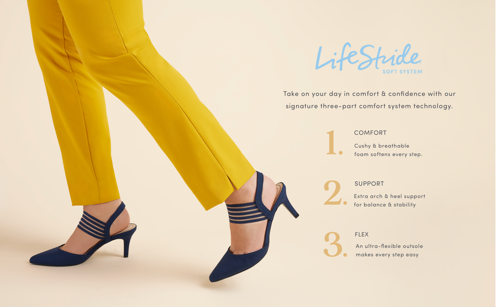 Soft System comfort package provides all-day support, flex, and cushioning