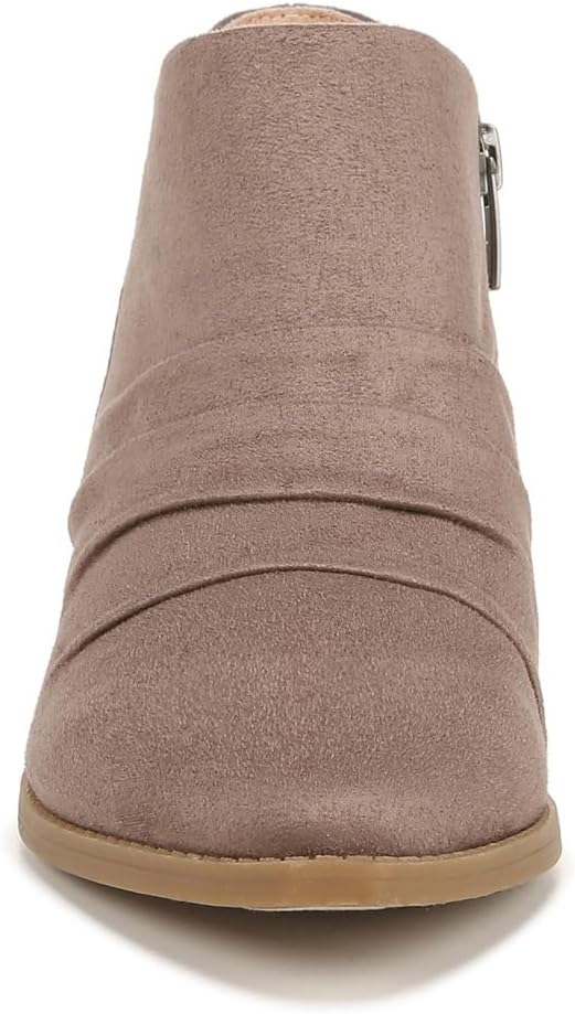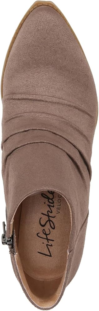 Western style never looked or felt better in these comfortable ankle boots for women. Microsuede upper with a pointed toe, inside zipper for easy on/off, and slouch detailing. Toe box, heel counter, linings, and upper material partially crafted with recycled materials. Soft System® comfort package provides all-day support, flex, and cushioning. Get next-level comfort with Velocity 2.0®, featuring luxe linings, superior cushioning, and a premium insole with shock absorption & pressure distribution. Traction sole provides you with extra stability. Just Right Height 1 and 5/8 inch stacked block heel.