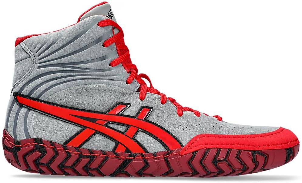 حذاء المصارعة اججريسور 5 هو واحد من أكثر الأنماط راحة في مجموعة المصارعة من اسيكس. تم تصميم مادة اكسين في الجزء العلوي لتلف قدمك بملمس أكثر نعومة. يتميز الحذاء أيضًا بتعزيزات داعمة على الجانبين للحفاظ على ثبات جيد. كما أن هذه الألواح أكثر مرونة من الإصدار السابق للتحرك بشكل طبيعي مع قدمك. أخيرًا، يوفر النعل الخارجي احتكاكًا مستهدفًا للمساعدة في زيادة قبضتك على السجادة.