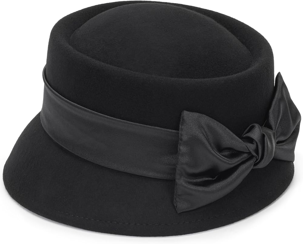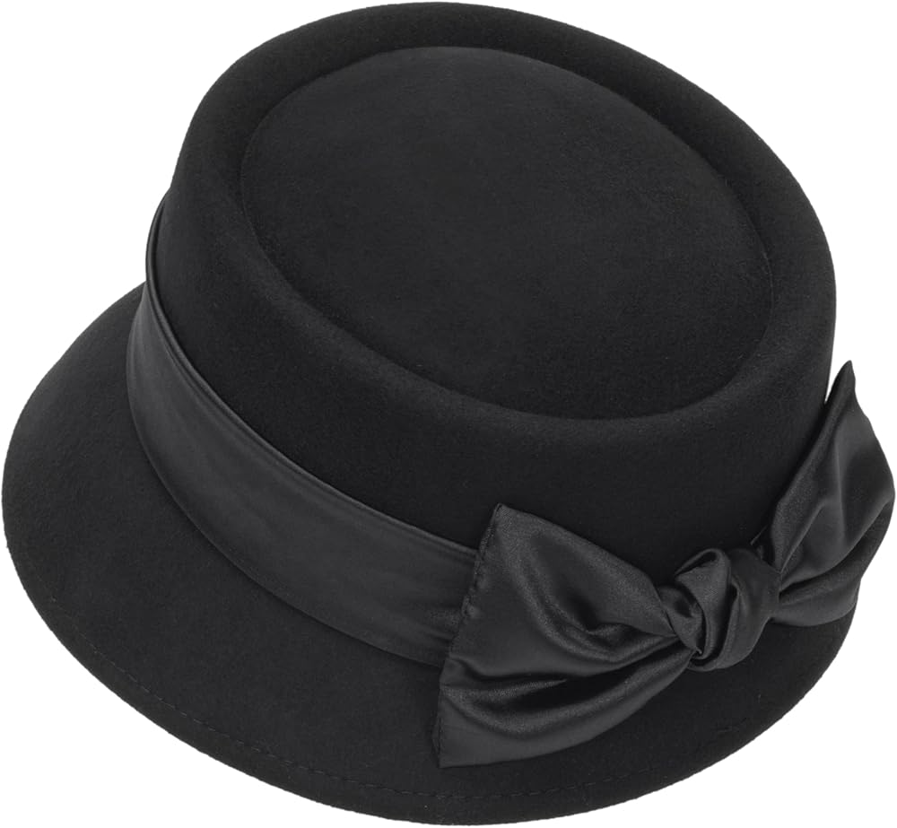 قبعة فطيرة لحم الخنزير الكلاسيكية - قبعة علوية مسطحة ذات حافة قصيرة للنساء والرجال مع شريط فيونكة