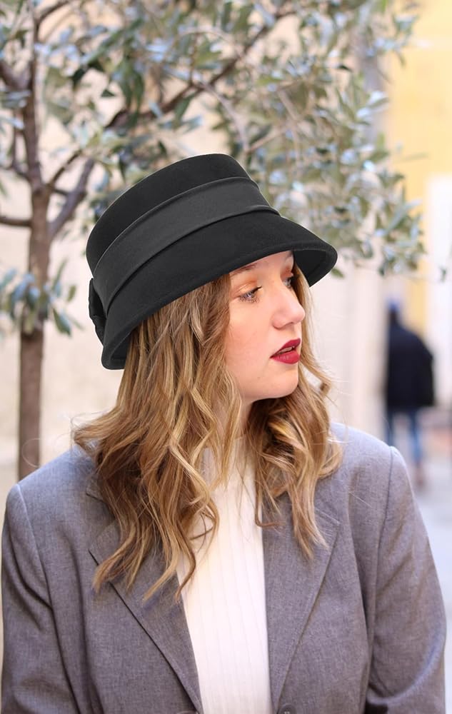 • 【تصميم ذو حافة قصيرة】بالمقارنة مع القبعة ذات الحافة العريضة، ستكون قبعة فيدورا ذات الحافة القصيرة أكثر توازنًا. تحتوي هذه الفيدورا أيضًا على شريط قبعة مزخرف، مما يظهر مظهرًا أنيقًا وأنيقًا.