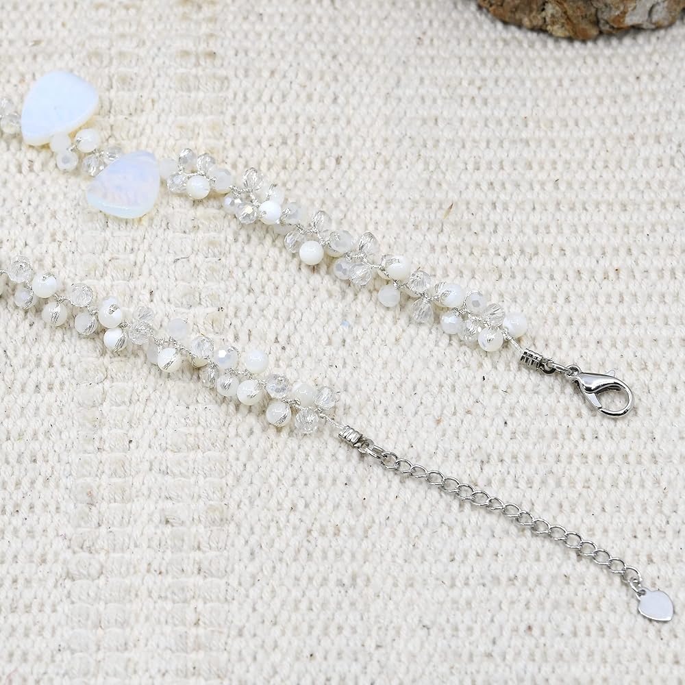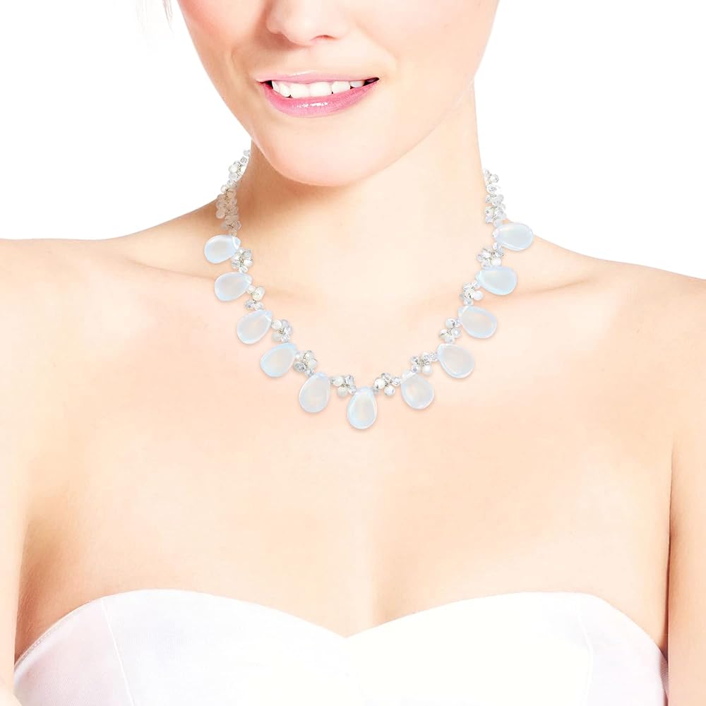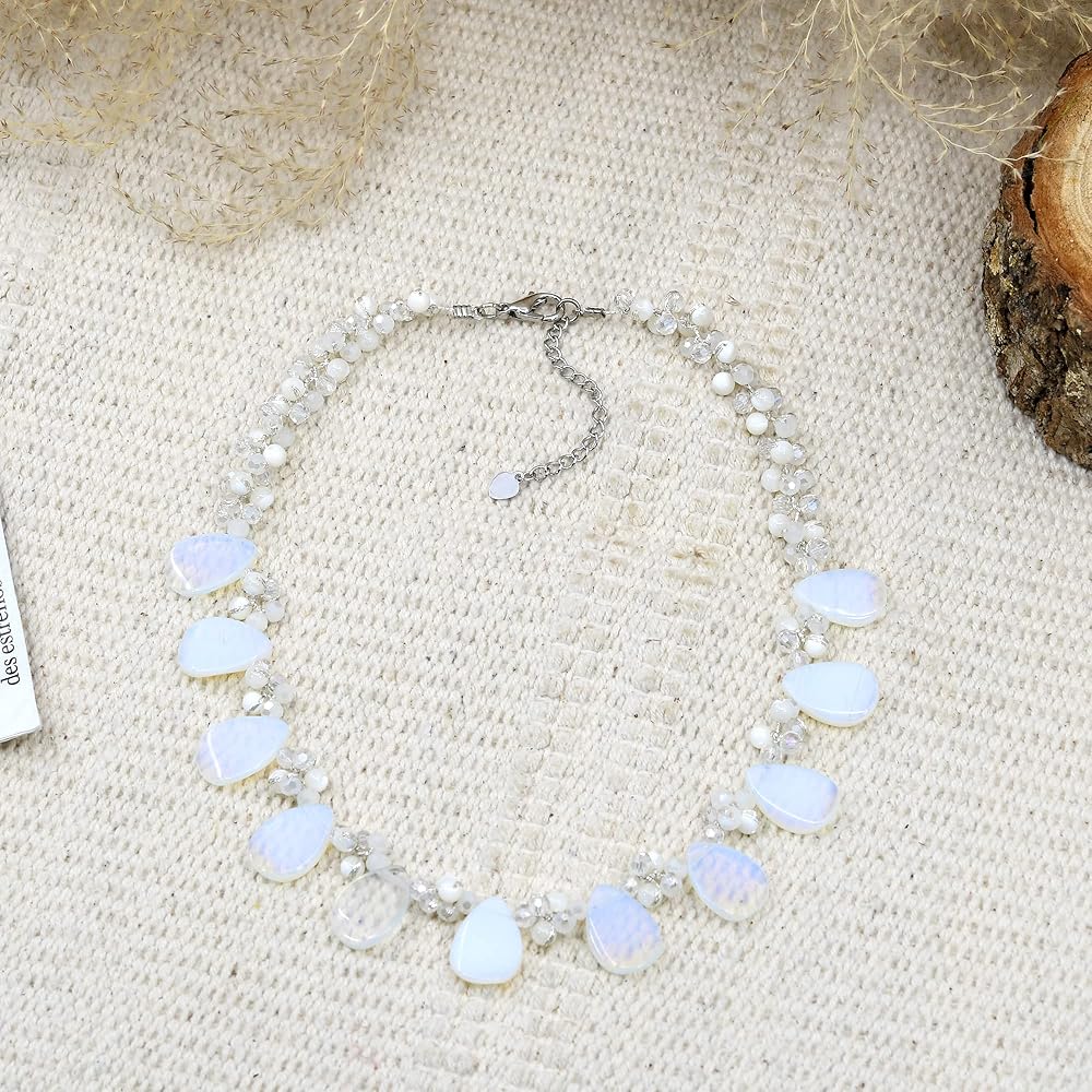 AeraVida Exotic Teardrops Moonstone and Freshwater Pearls Handmade Necklace | Gorgeous Handmade Jewelry for Women | Handmade Simulated Moonstone Necklace | Trendy Gifts for Women | Statement Necklace