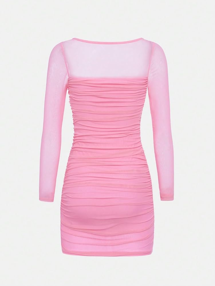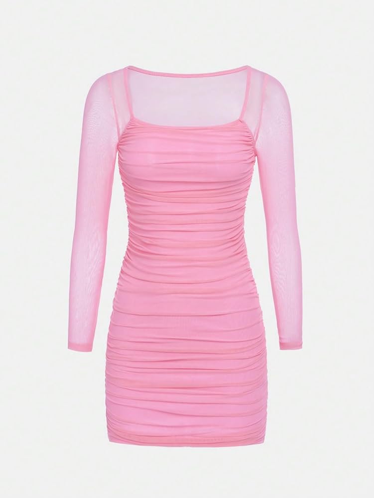 - فستان قصير كاجوال برقبة مربعة وأكمام طويلة وقصة ضيقة