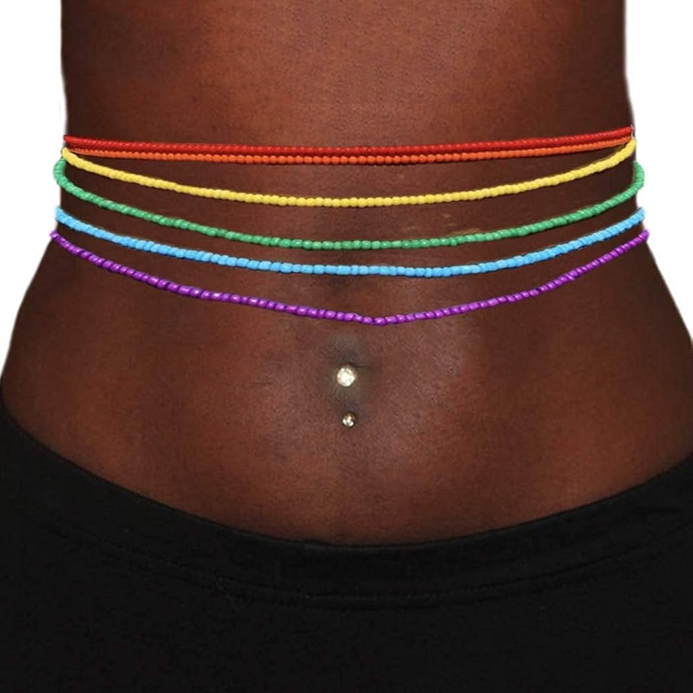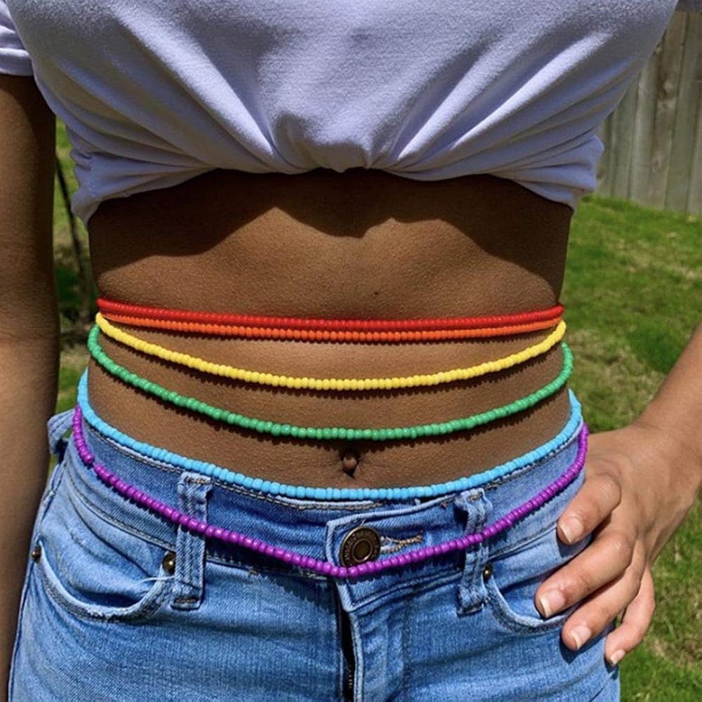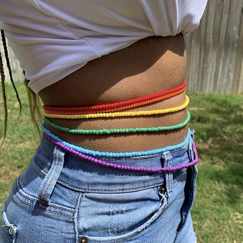 سلسلة الخصر مصنوعة من الخرز الملون. متوفرة بألوان مختلفة. عبوة من 6 قطع.