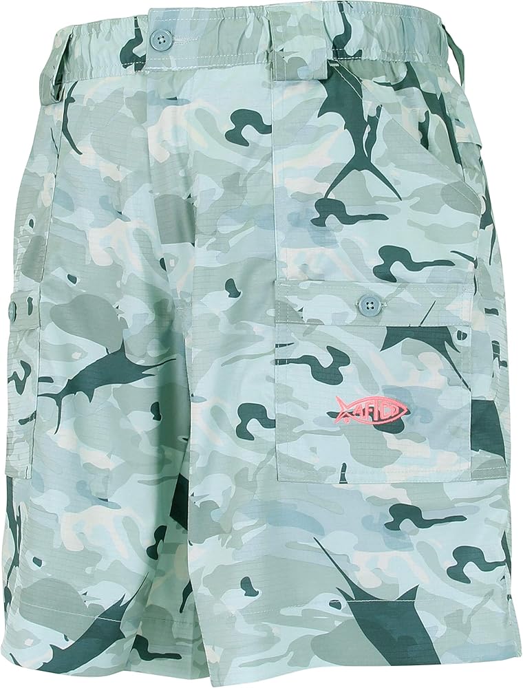 Camo Fishing shorts are inspired by the first Fishing short, the M01 - Original Fishing Short that has been a popular bottom for any Angler hunting for Fresh or Saltwater Fish. Made with a durable poly / elastane ripstop dobby, you will experience the same durability that you expect from our AFTCO original fishing shorts. The Camo Original Fishing short for Men has been treated with a stain resistant AFGUARD treatment and features an extremely strong, but lightweight AFLEX 2-way stretch fabric. These shorts include 7 pockets - 1 Cordura lined pliers pocket. Demanding anglers can now enjoy Original AFTCO shorts in our popular tactical Camo print.