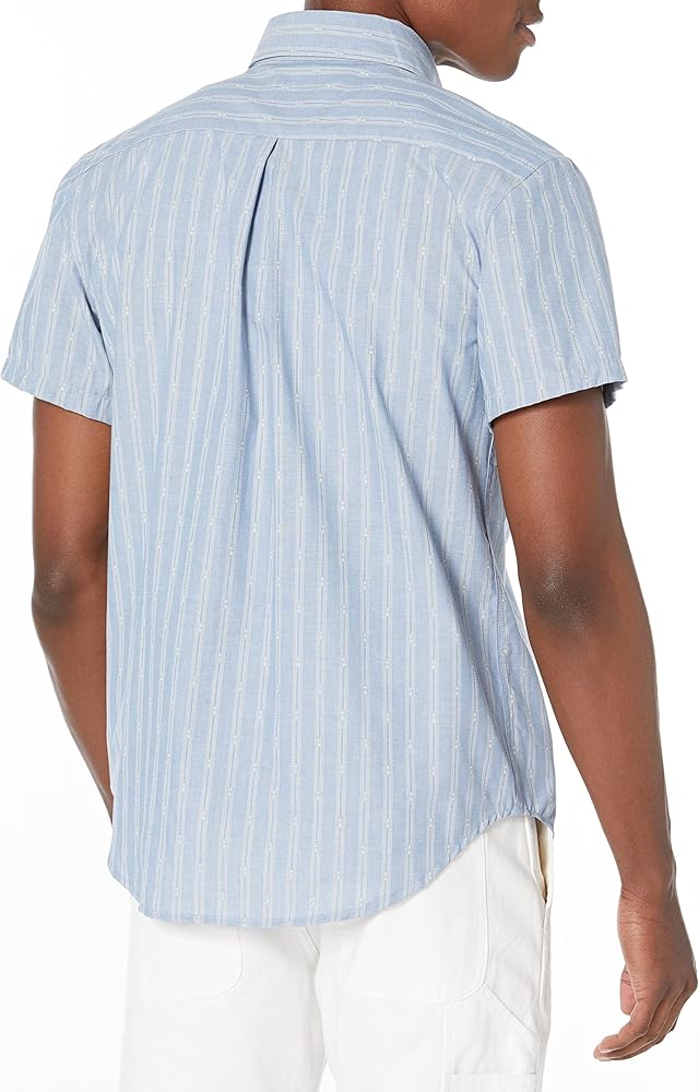 The Vintage Dobby Stripes is a Japanese lightweight fabric with vintage inspired vertical stripe pattern woven into the fabric. The Short Sleeve Easy Shirt is a relaxed fit short sleeve shirt with back pleating and a classic button-down collar. Cut and sewn in Canada.