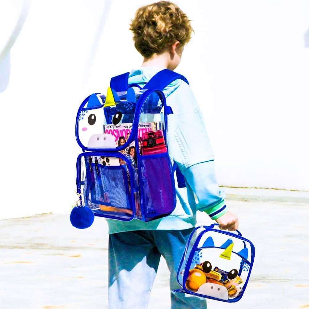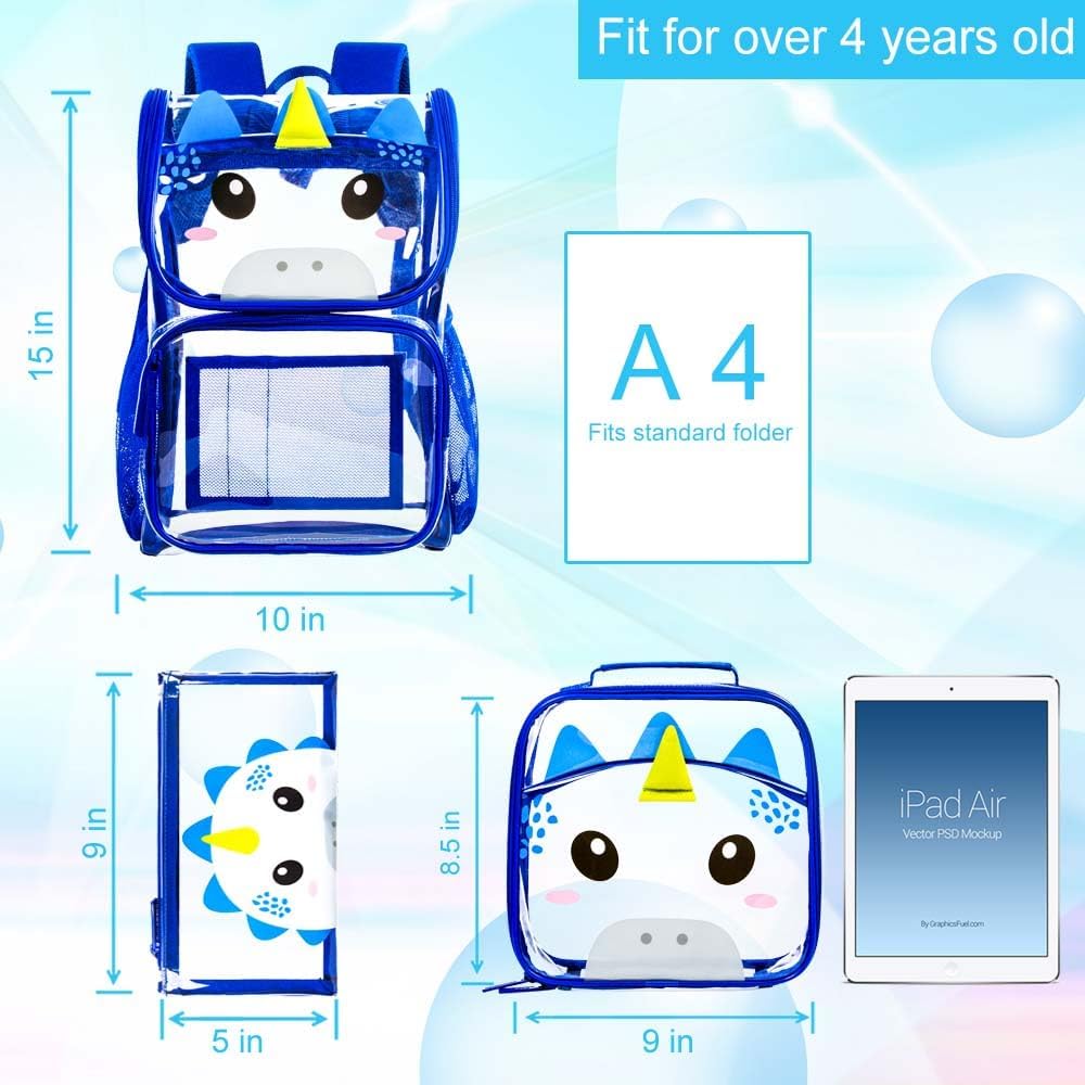 حقيبة ظهر شفافة فريدة من نوعها مكونة من 3 قطع: يتم ربط جسم حقيبة الظهر الشفافة للفتيات بسحابات (مع أزرار معززة) لسهولة الفتح والإغلاق. وحيد القرن اللطيف وذو التصرف الجيد تحبه الفتيات، مجموعة لطيفة.