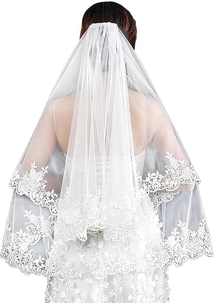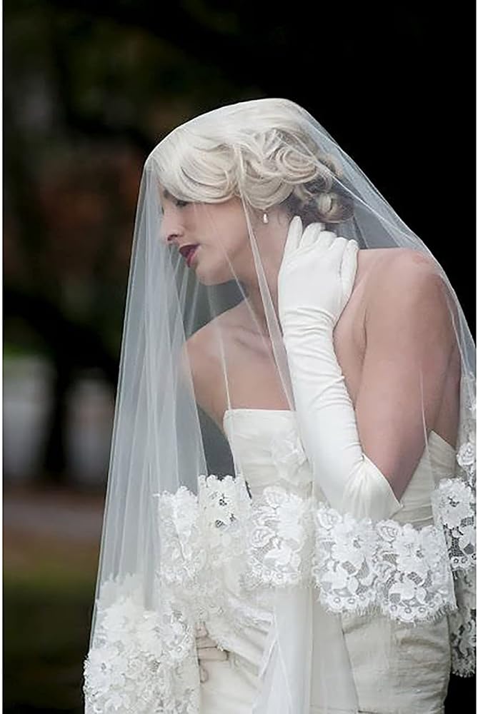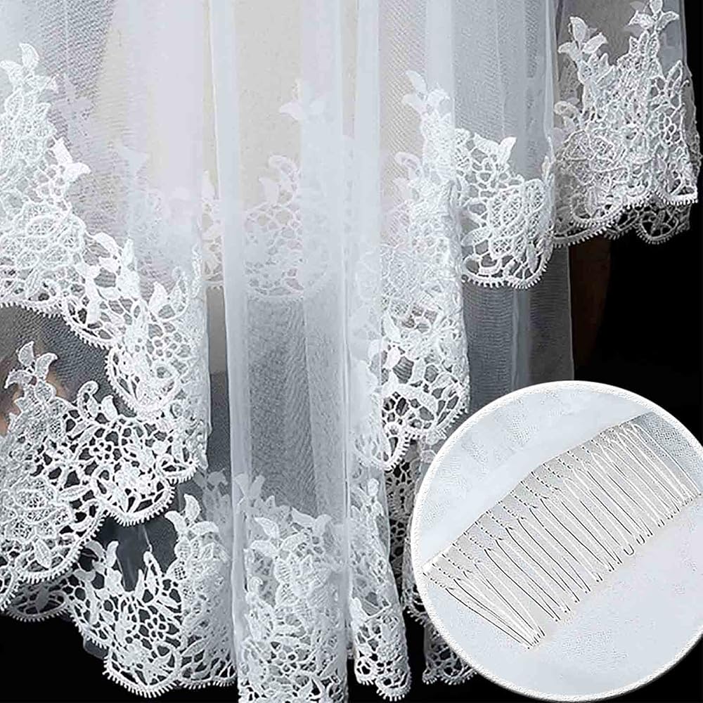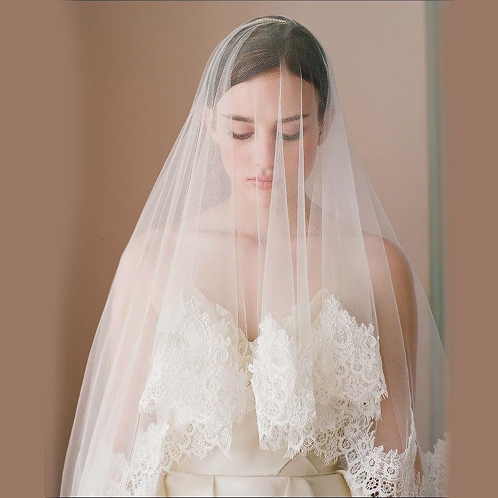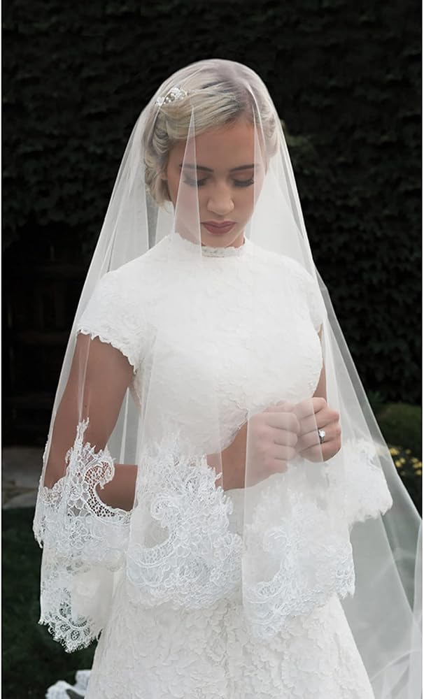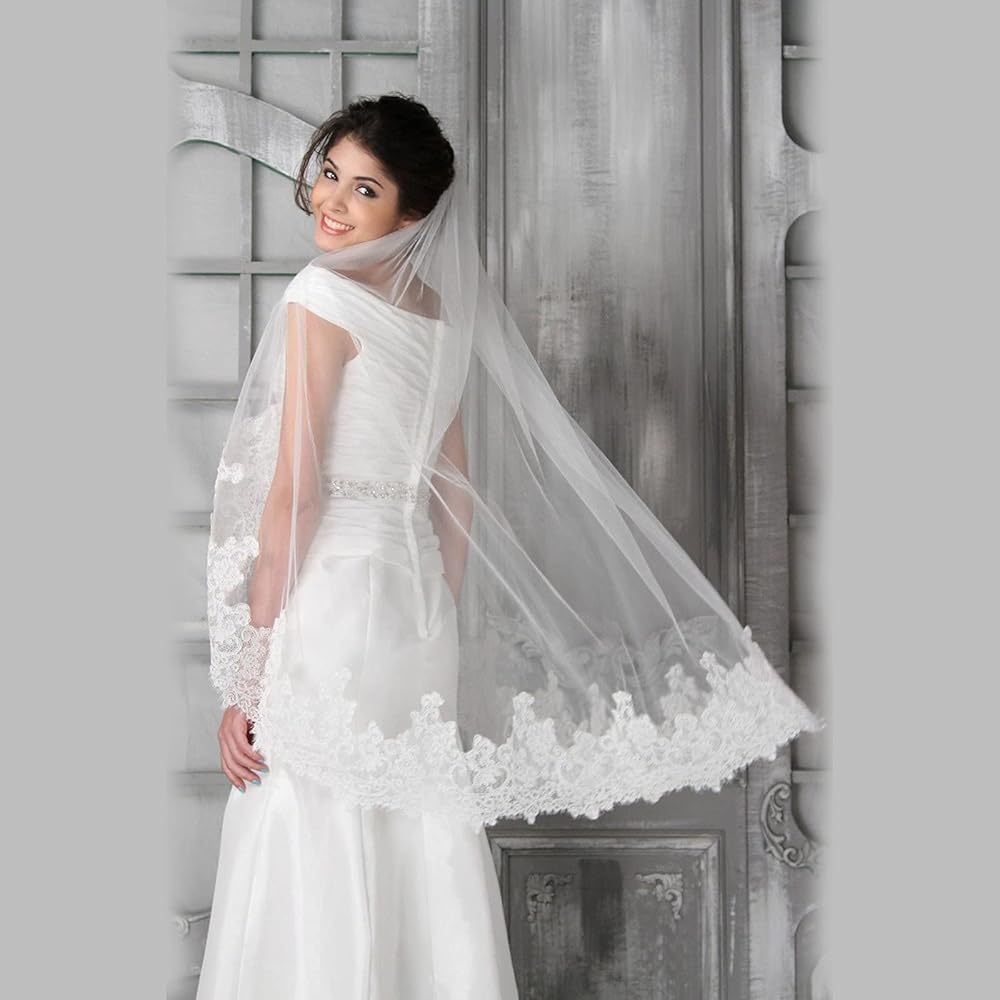 طرحة زفاف جميلة مصنوعة من قماش التول الناعم خفيف الوزن عالي الجودة، تصميم بحافة مطرزة من الدانتيل، تبدو أكثر روعة ولمعانًا.