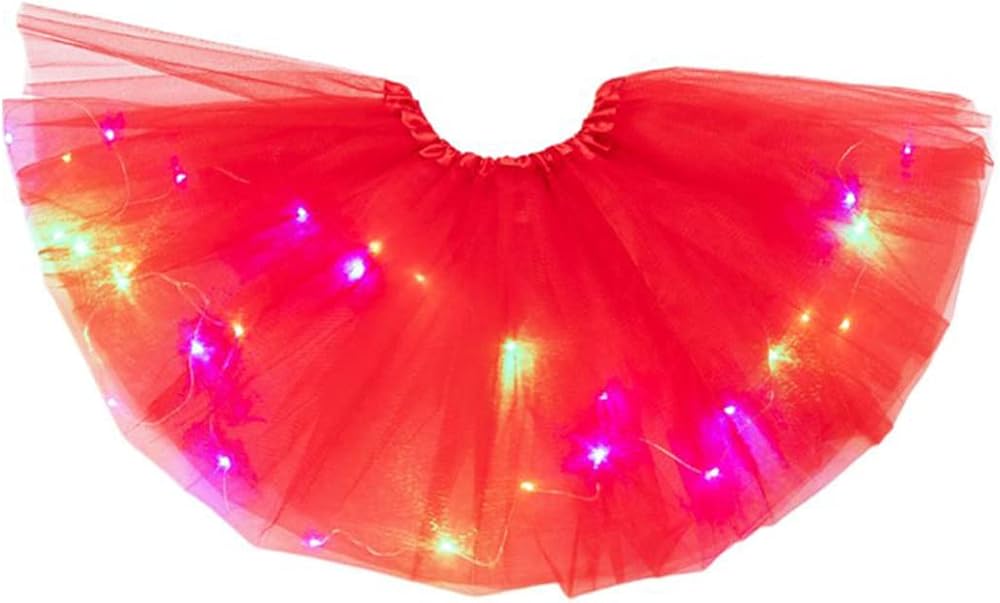 تنورة توتو LED مصنوعة من البوليستر والتول، وهو ليس من السهل تمزيقه. متوفرة باللون الأحمر والأرجواني والوردي. عبوة من قطعة واحدة.