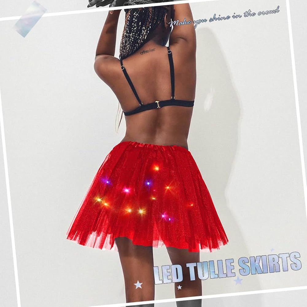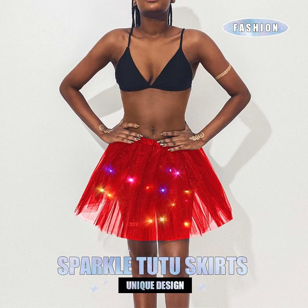 تنورة توتو الرقص مزودة بمصابيح LED، مما سيجعلك تبدين مشرقة جدًا في الظلام وتجذب انتباه الآخرين إليك.