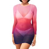 - غطاء ملابس سباحة شبكي شفاف أسود، فستان ضيق شفاف، ملابس نادي بأكمام طويلة، فستان قابل للتمدد شفاف مع رقبة مستديرة.