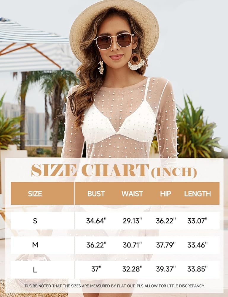 【Size】See through women swimwear cover up fits US S size, Bust:34.64" Hip: 35.43'' Length:30.70"