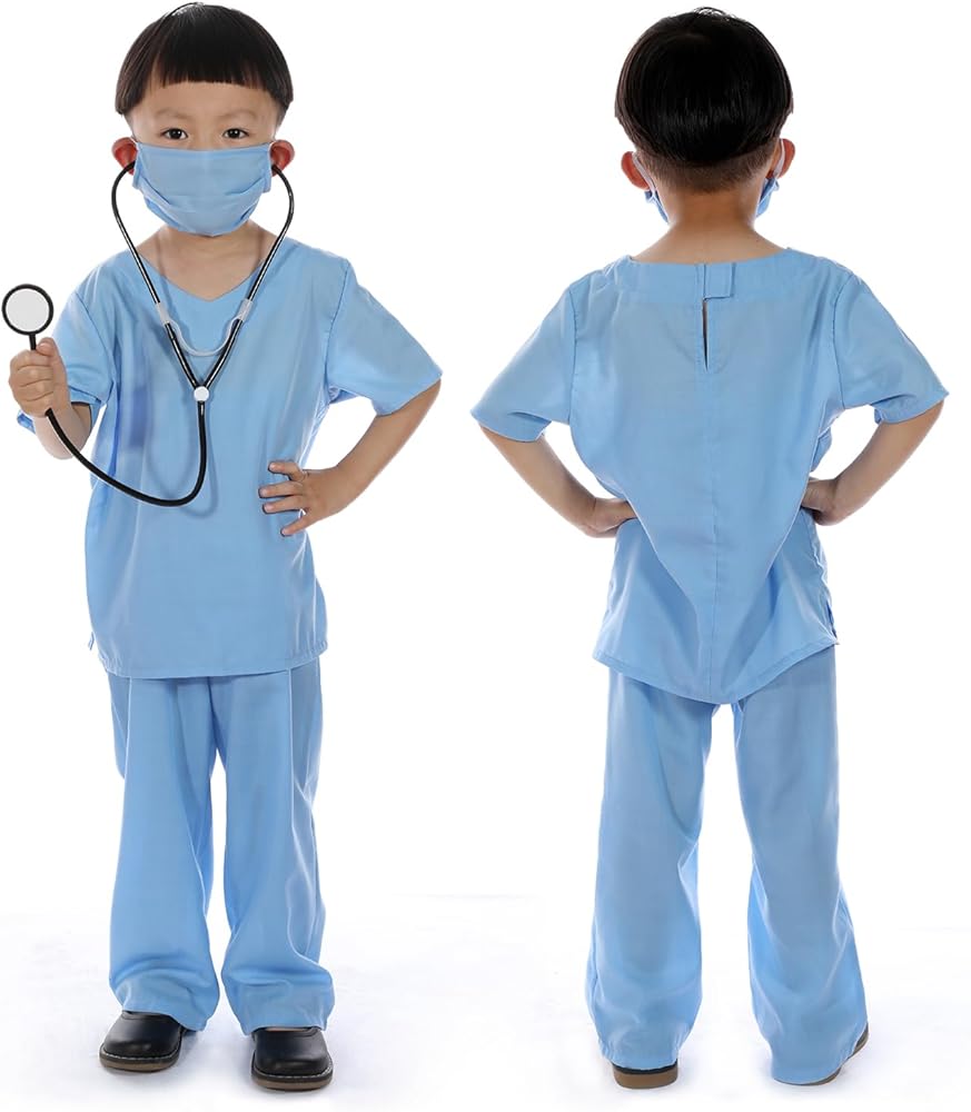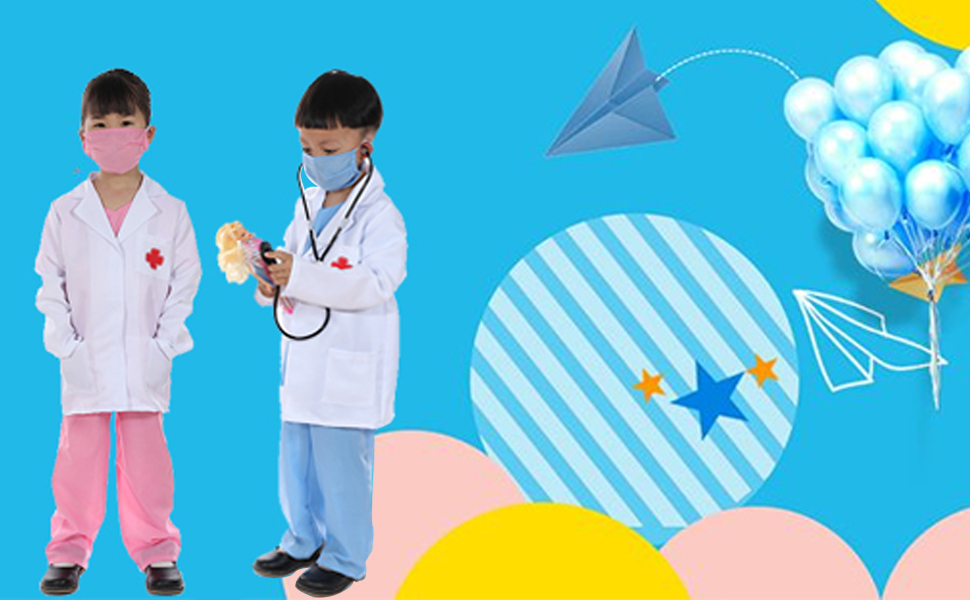 • تشجع الأطفال على تخيل واستكشاف تجارب التظاهر المثيرة لكونهم طبيبًا، وهي رائعة لزي طبيب الأطفال في الهالوين، أو هدية للأخ الكبير أو اللعب اليومي.