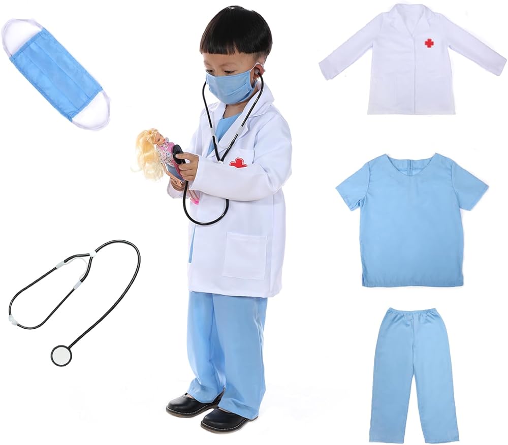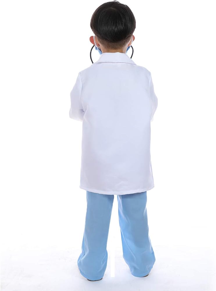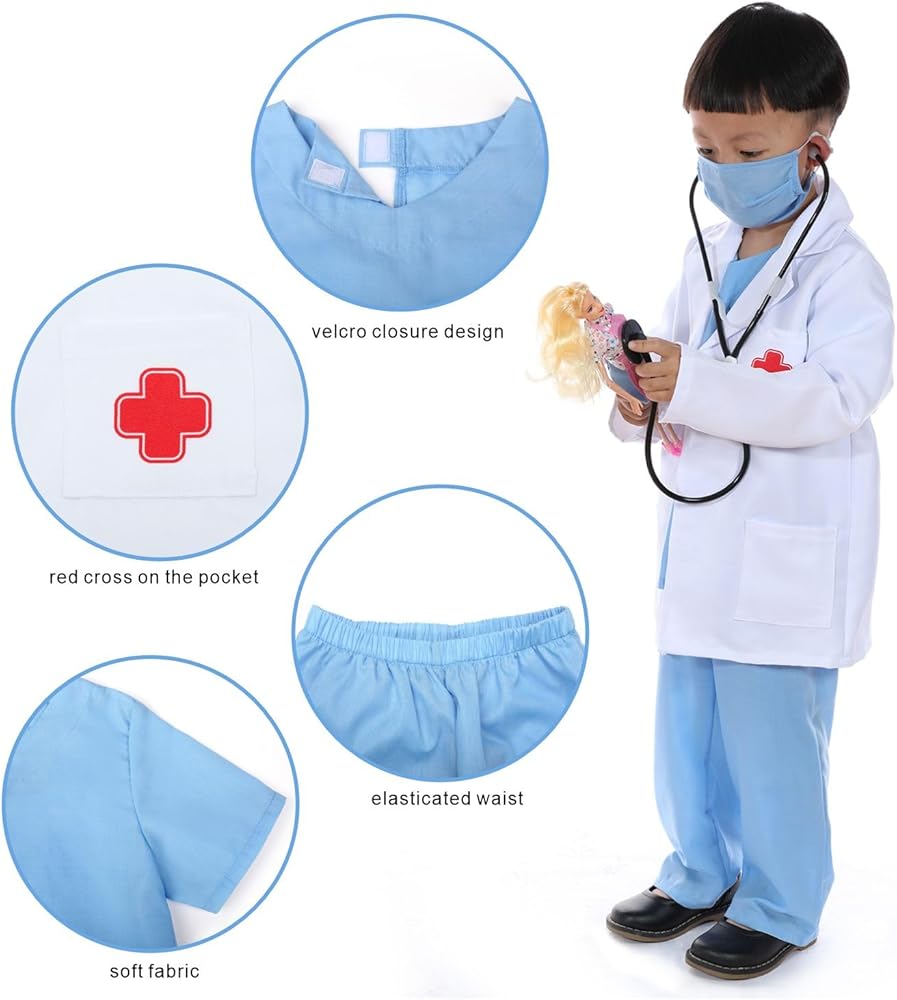 Leadtex- زي الطبيب التظاهري للأطفال، قم بلبس ملابس الطبيب التي تلعب الأدوار مع الجزء العلوي والسراويل والقناع والمعطف والسماعات الطبية.