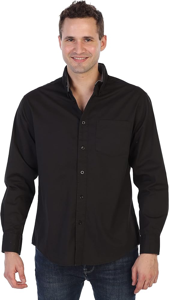 قميص كاجوال للرجال مع رباط داخلي متباين ولون الياقة وأكمام طويلة وأزرار سفلية وياقة بأزرار، 100% قطن