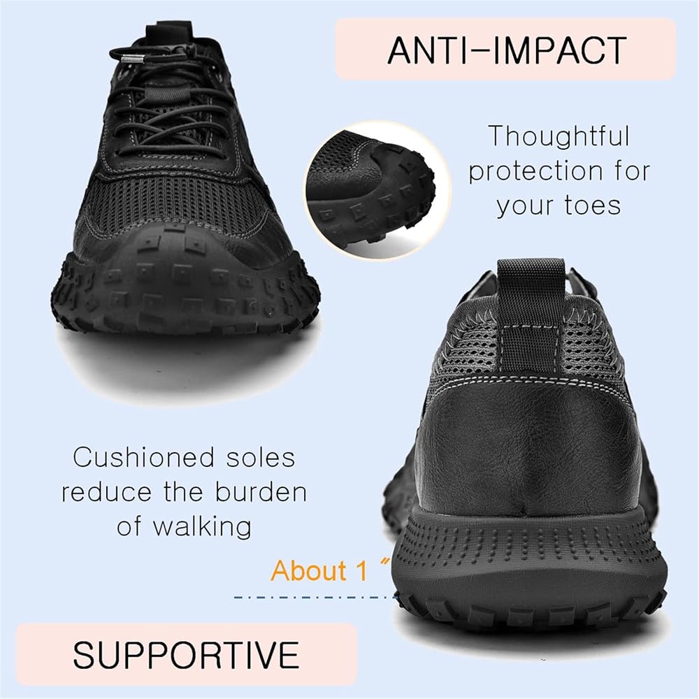 • قابل للكسر: جزء علوي من الجلد بتصميم مثقوب في أحذية المشي حافي القدمين للرجال، وهو ليس مساميًا فحسب، بل أيضًا أكثر نعومة وراحة، للتخلص من الحشو في وقت الصيف.