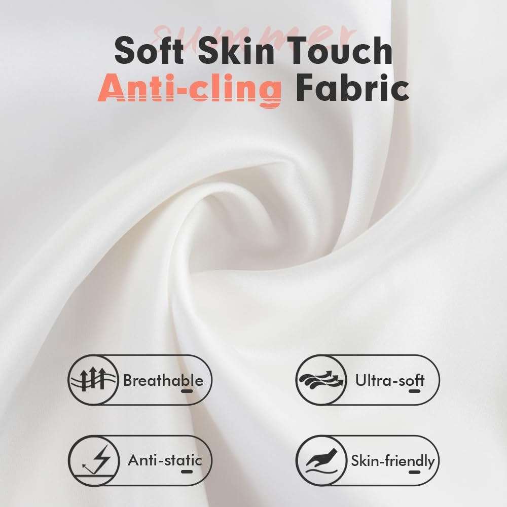 【حريري وخفيف الوزن】نصف زلة للنساء تحت الفستان مصنوع من قماش الساتان، مما يوفر ملمسًا ناعمًا وحريريًا خفيف الوزن وغير شفاف، مما يجعل هذه التنورة سهلة الارتداء للنساء مثالية للارتداء في الصيف.