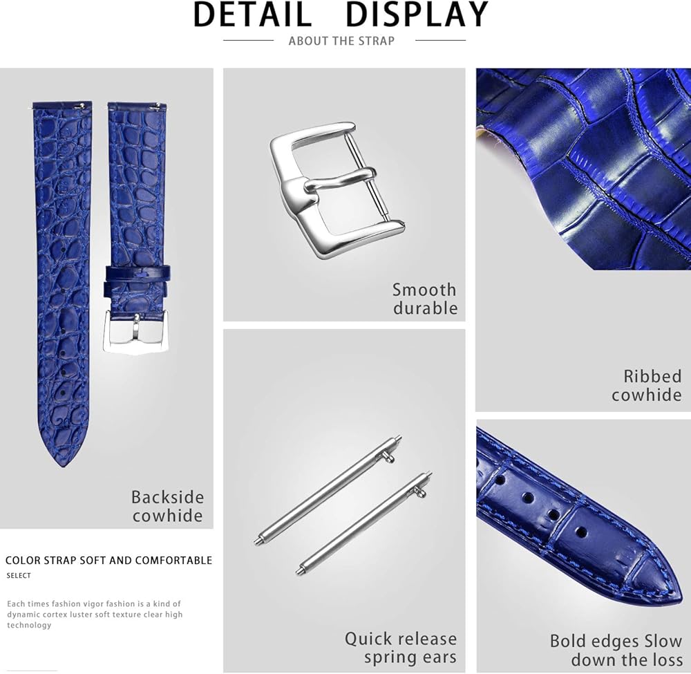 BINLUN حزام ساعة جلدي سريع الإصدار من الجلد الأصلي وأشرطة ساعة بديلة 12 مم 14 مم 16 مم 18 مم 19 مم 20 مم 21 مم 22 مم أو 24 مم للرجال والنساء مع متعدد الألوان
