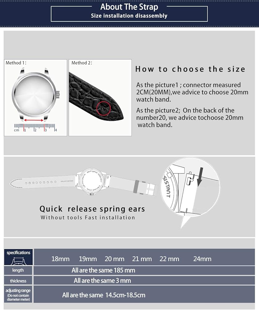 【تشمل العبوة: 1 × سوار ساعة جلدي؛ 1 × أداة شريط زنبركي؛ 2 × قضبان زنبركية سريعة الفك؛ 1 × قطعة قماش للتنظيف. إذا كانت لديك أي مشكلة مع سوار الساعة البديل الخاص بنا، فلا تتردد في الاتصال بنا للحصول على المساعدة.