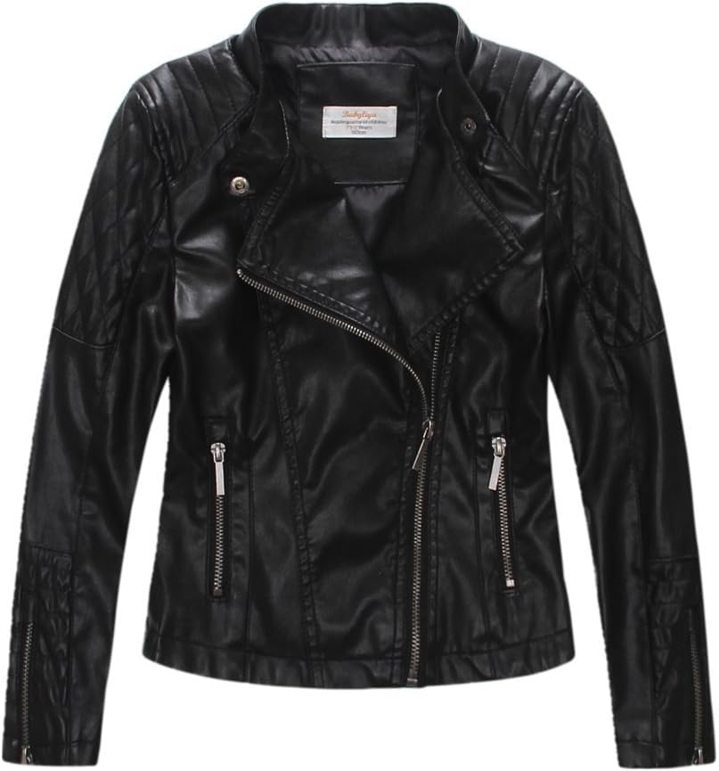 سترات Grils Moto Bomber الصناعية، سحاب إغلاق، جيوب على جانبي الخصر، ياقة واقفة، نمط خصر قصير. ملابس جلدية مزيفة من الجلد الأسود للربيع والخريف، أزياء الخمسينيات من طراز الخمسينيات، جلد ناعم، جيب إدخال مائل، مناسبة لـ: الحياة في الهواء الطلق، ركوب الدراجات، التخييم والمشي لمسافات طويلة.