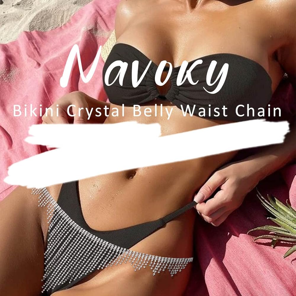 ملابس داخلية بيكيني مثيرة من حجر الراين من Navoky، سلسلة خصر كريستالية للبطن، سراويل داخلية رفيعة، سلاسل مجوهرات، إكسسوارات للنساء والفتيات